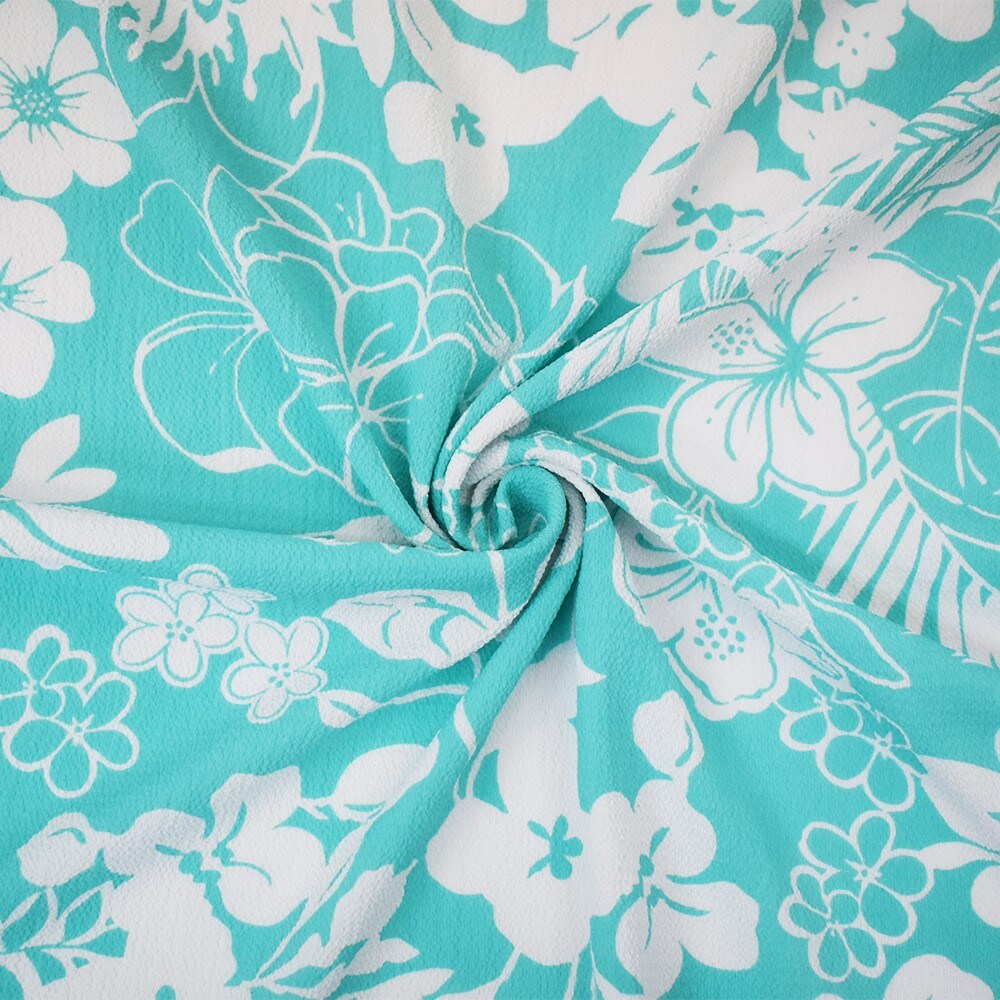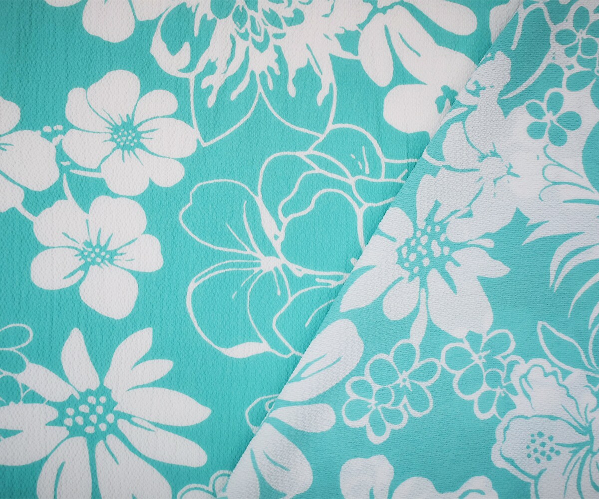 Pastel Teal-White Polyester Nylon Floral Printed Pebble Crepe Woven Fabric By the Yard