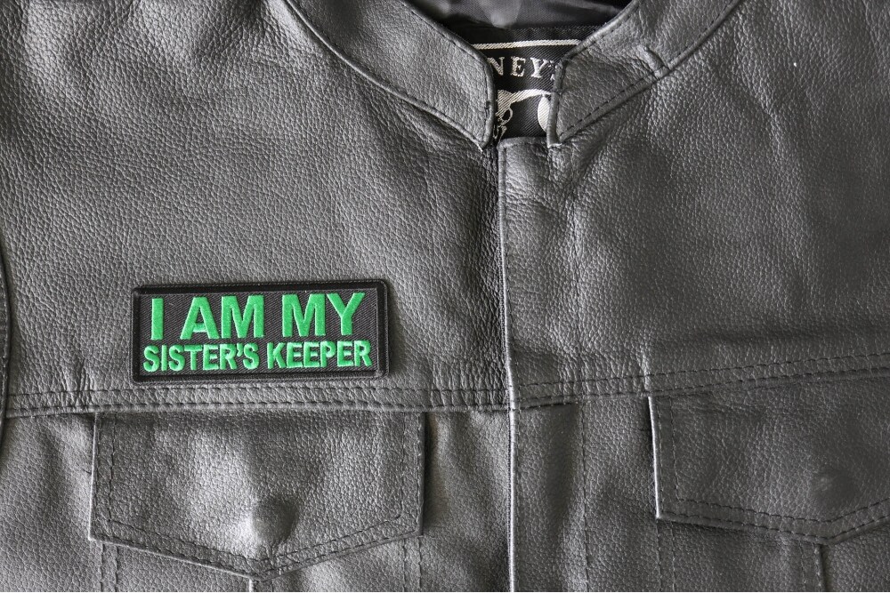 Patch, Embroidered Patch (Iron-On or Sew-On), I Am My Sister's Keeper Green on Black, 4" x 1.5"