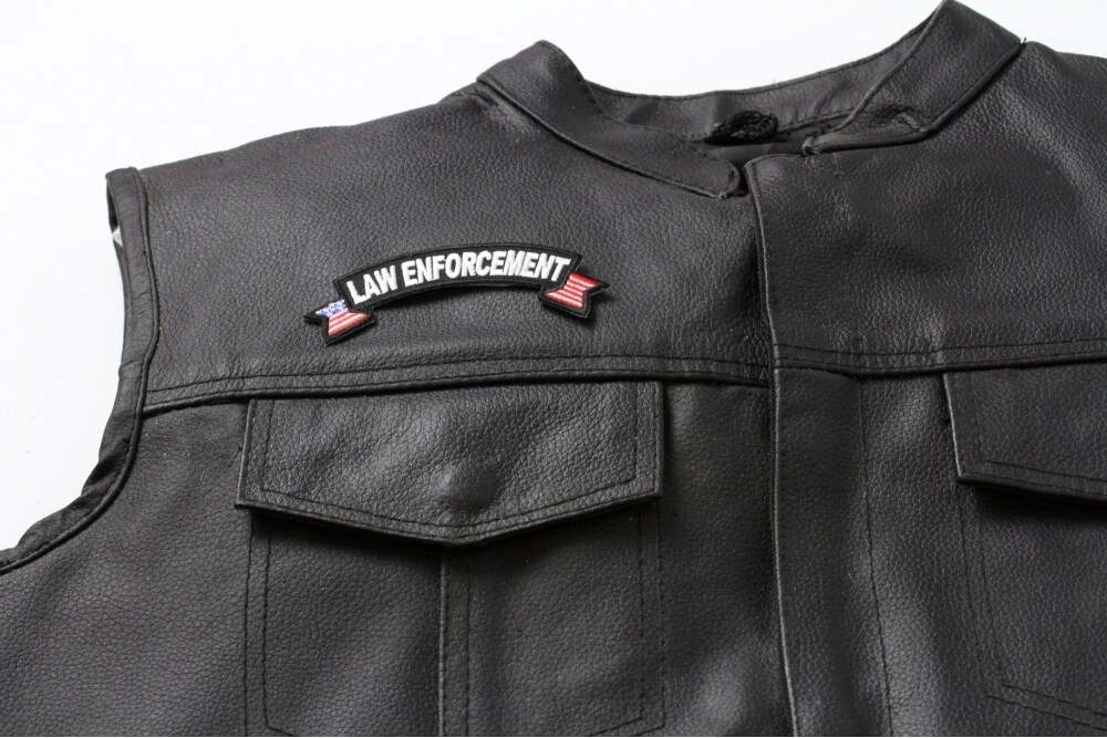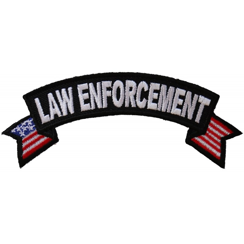 Patch, Small Embroidered Rocker (Iron-On or Sew-On), Law Enforcement Police United States Flag, 4" x 1.5" Arch
