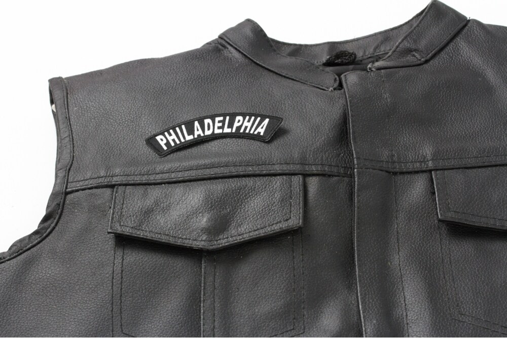 Patch, Small Embroidered Rocker (Iron-On or Sew-On), Philadelphia Pennsylvania City Patch, 4" x 1" Arch