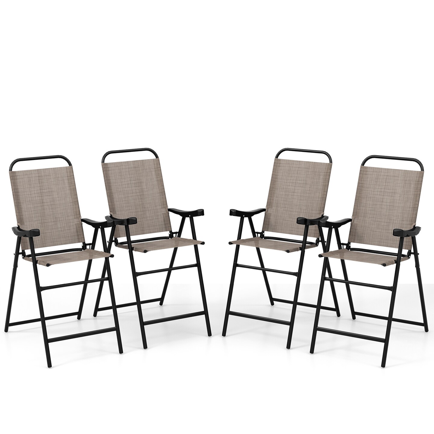 Patio Folding Bar Stool Set Of 4 With Metal Frame And Footrest