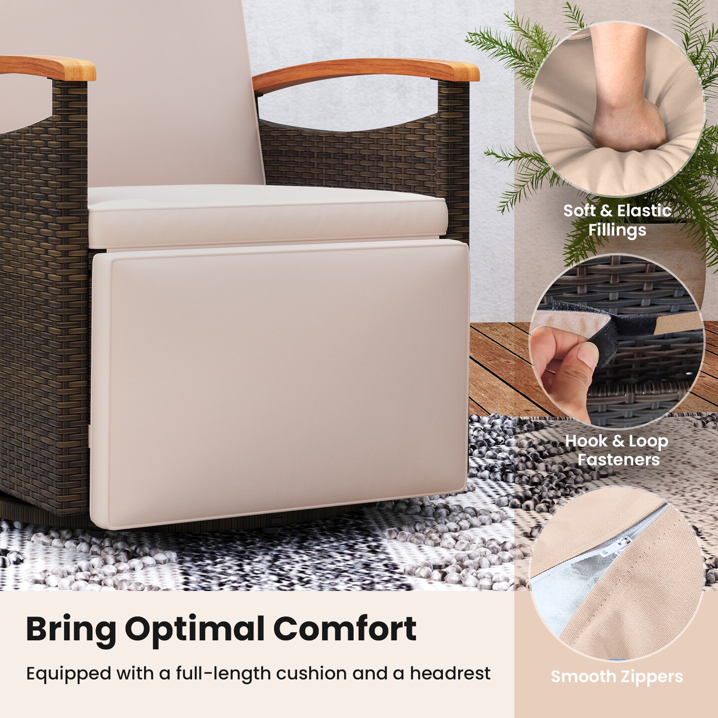Patio Rattan 360° Swivel Recliner Chair with Adjustable Backrest and Footrest