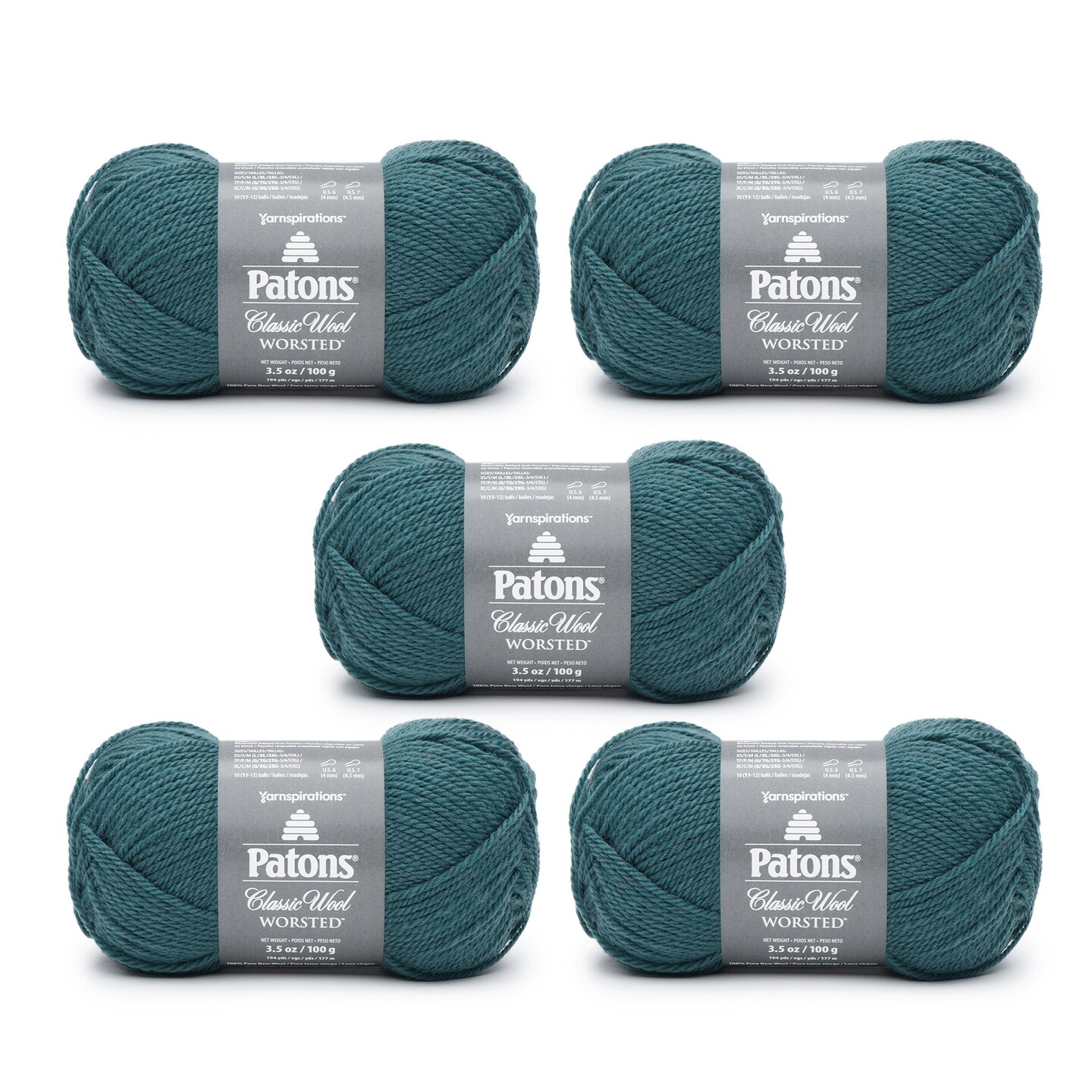 Patons Classic Wool Rich Teal Yarn - 5 Pack of 3.5oz/100g - Wool - 4 Medium - 210 Yards - Knitting/Crochet