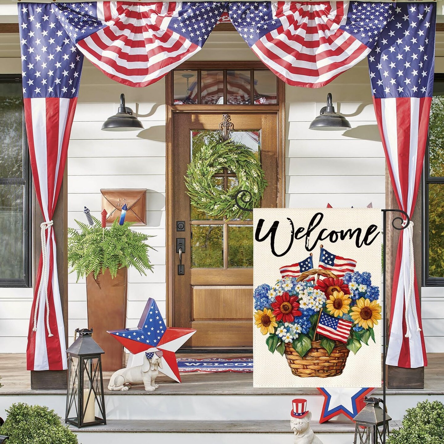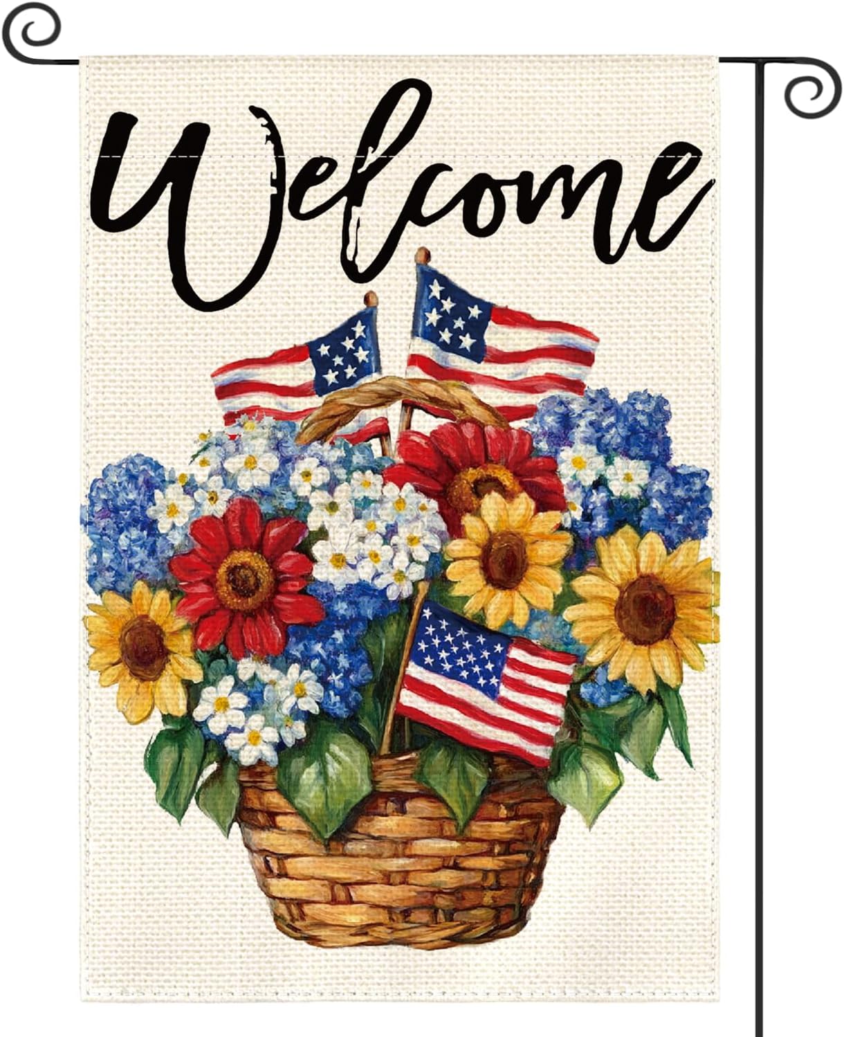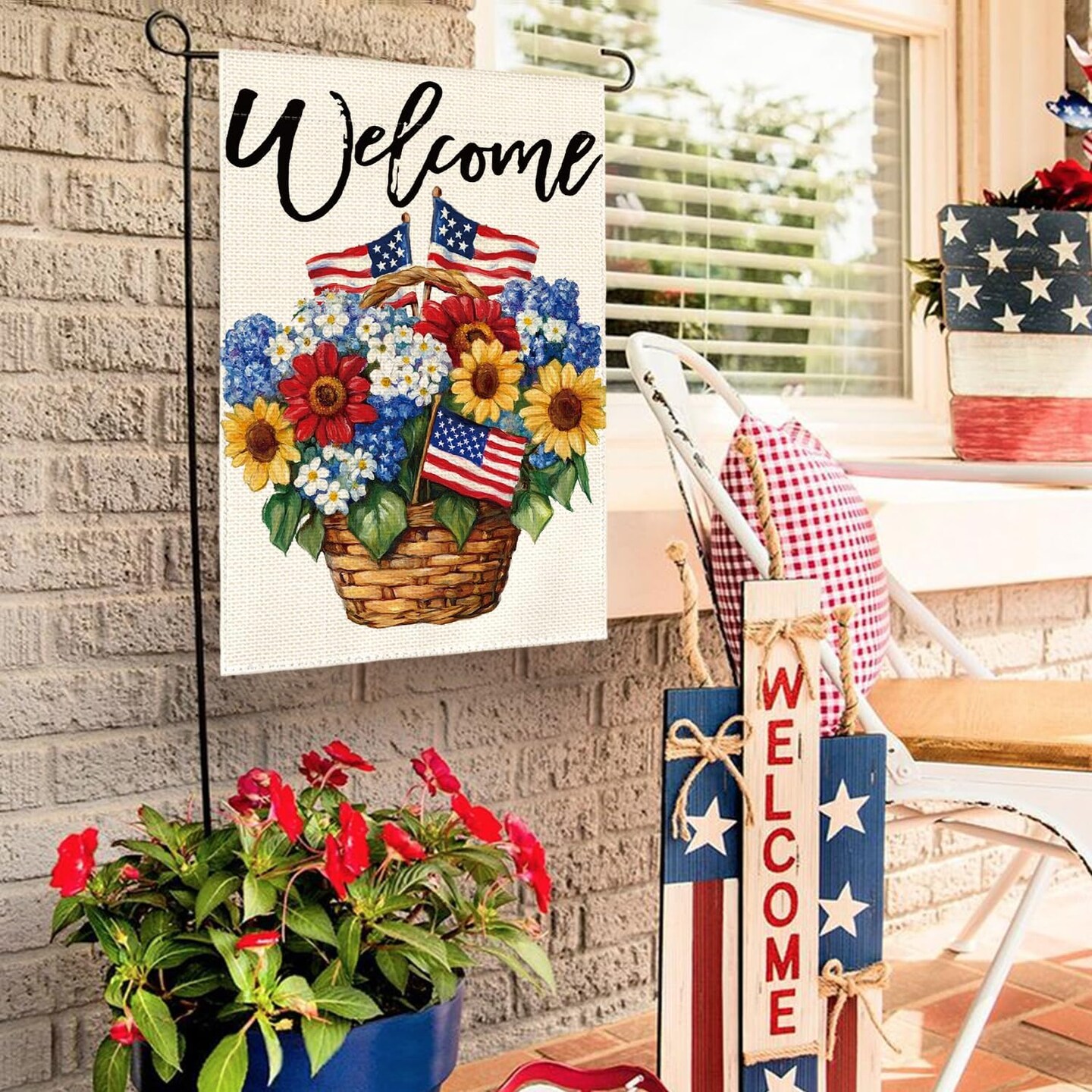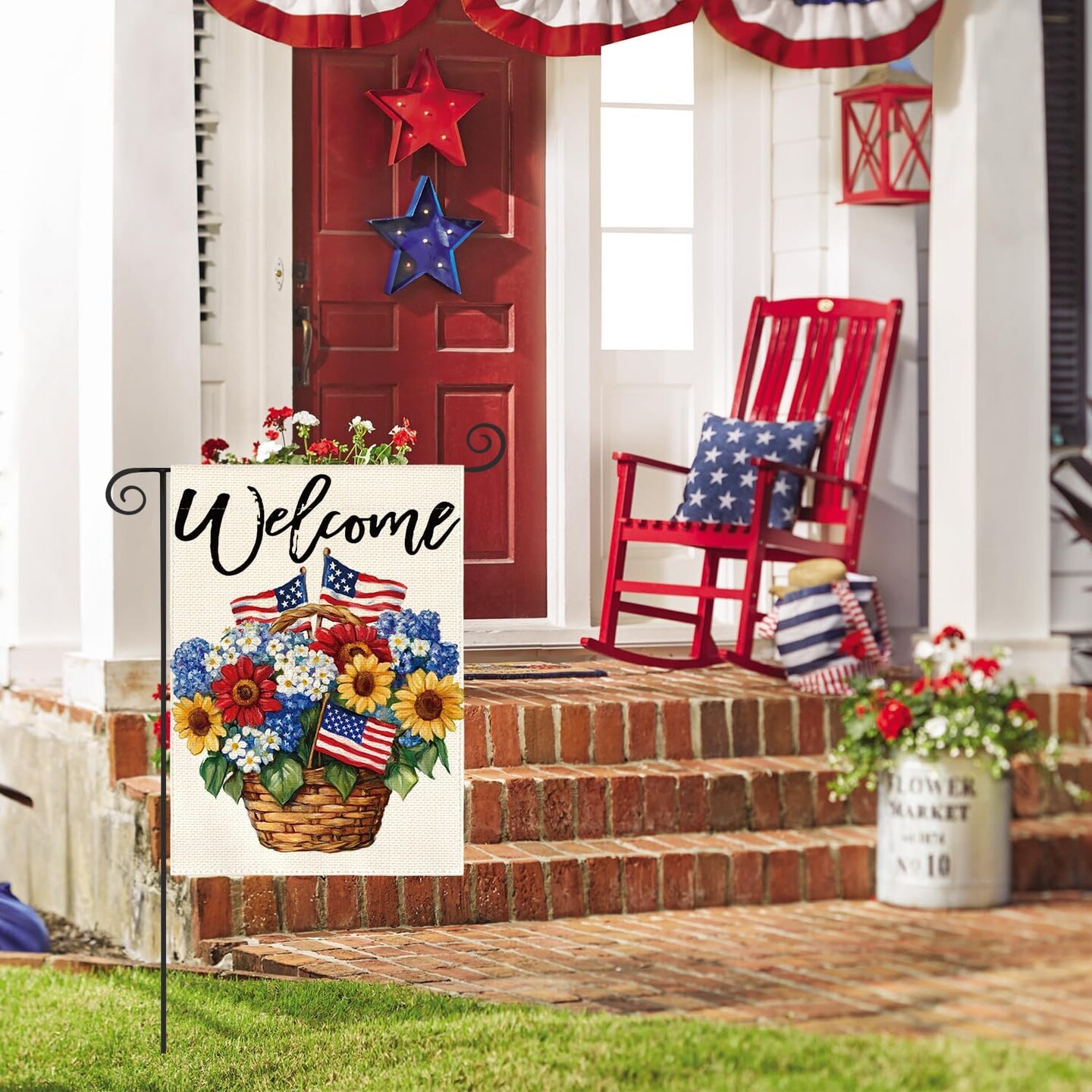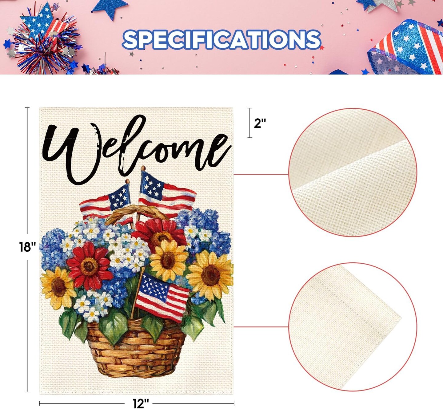 Patriotic 4th of July Floral Garden Flag 12x18 Inch Double Sided Outside, Memorial Day USA America Welcome Yard Outdoor Decoration