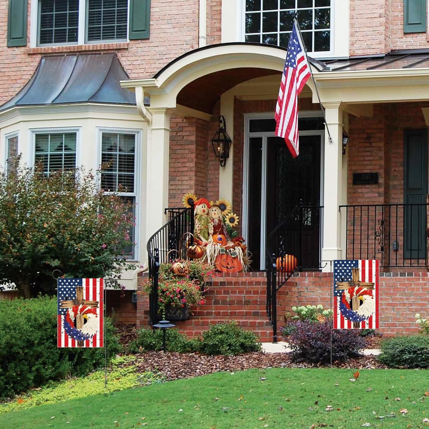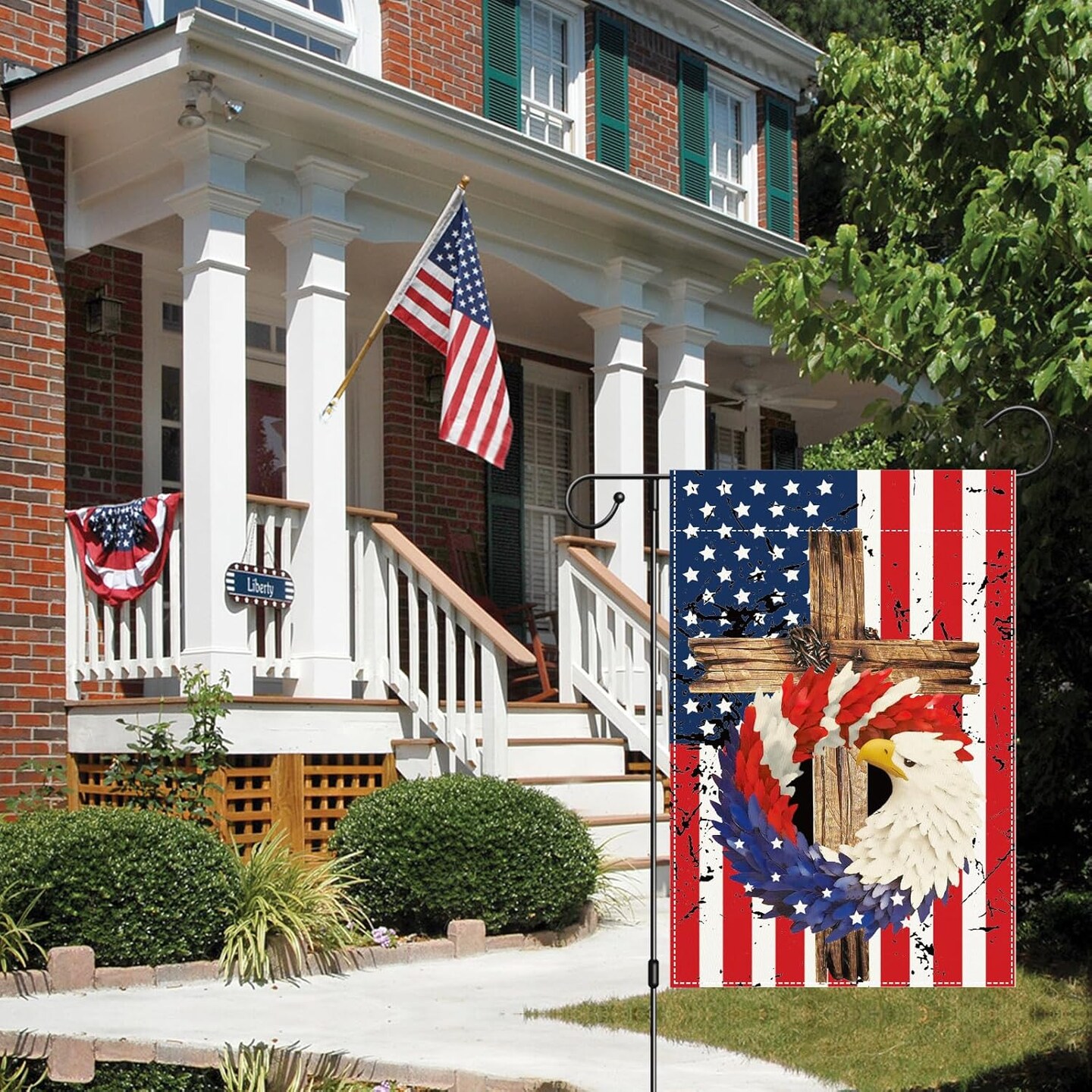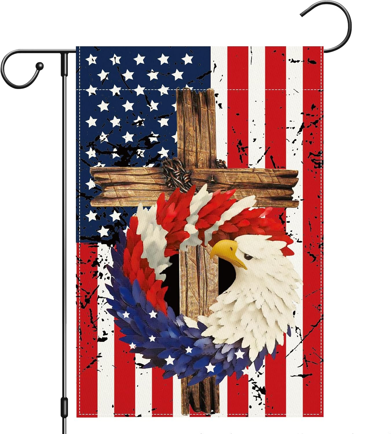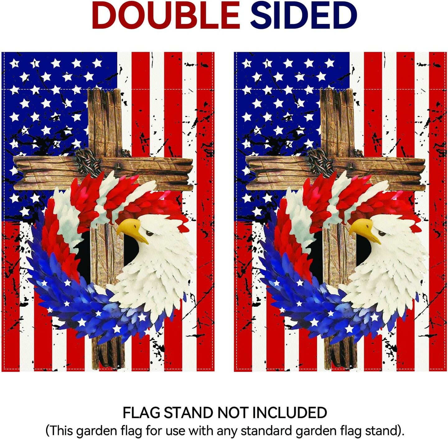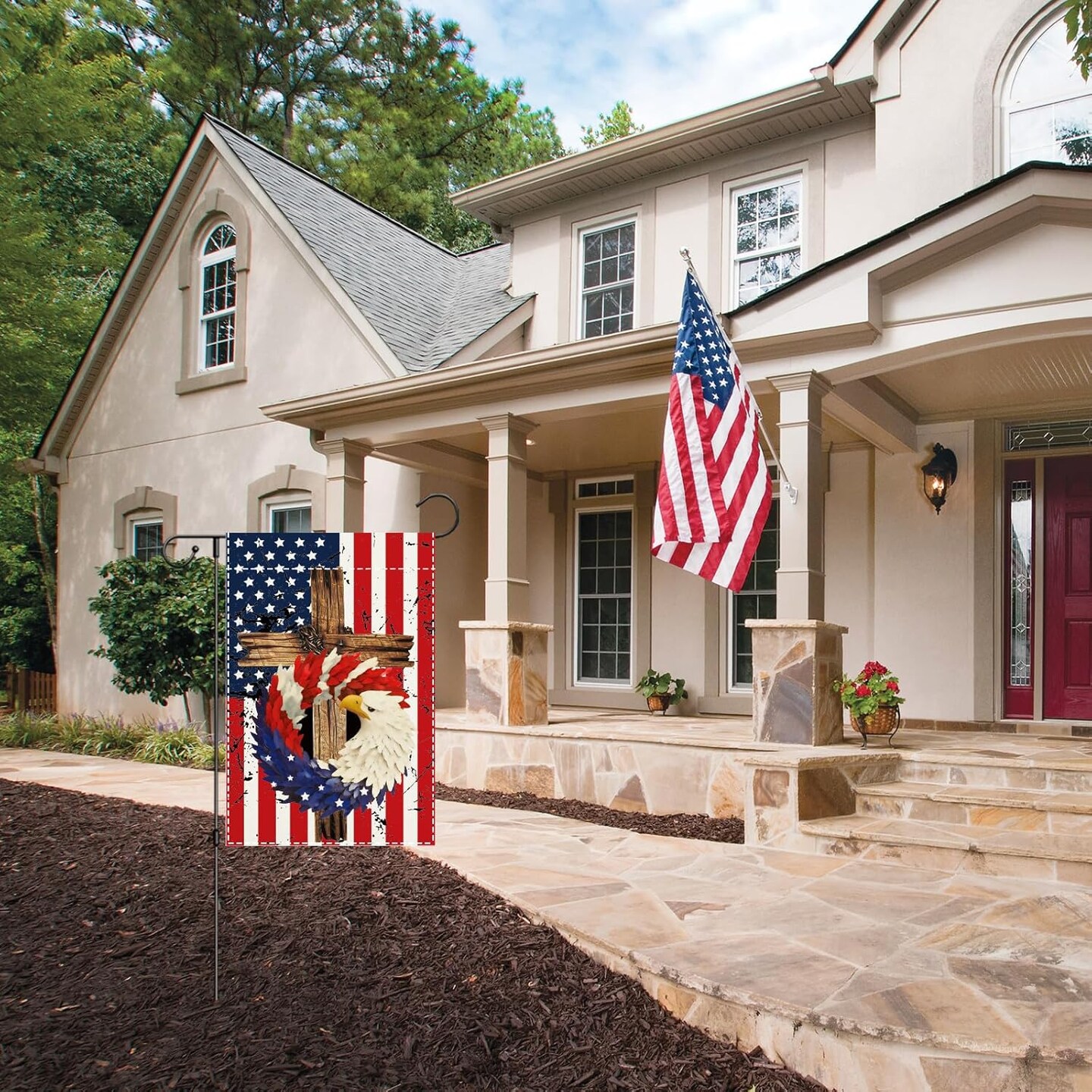 Patriotic 4th of July Garden Flag Double Sided 12x18 Inch Stars and Stripes Eagle Wreath USA Memorial Day Independence Day Welcome Sign Yard Flag Farmhouse Outdoor Decor Burlap
