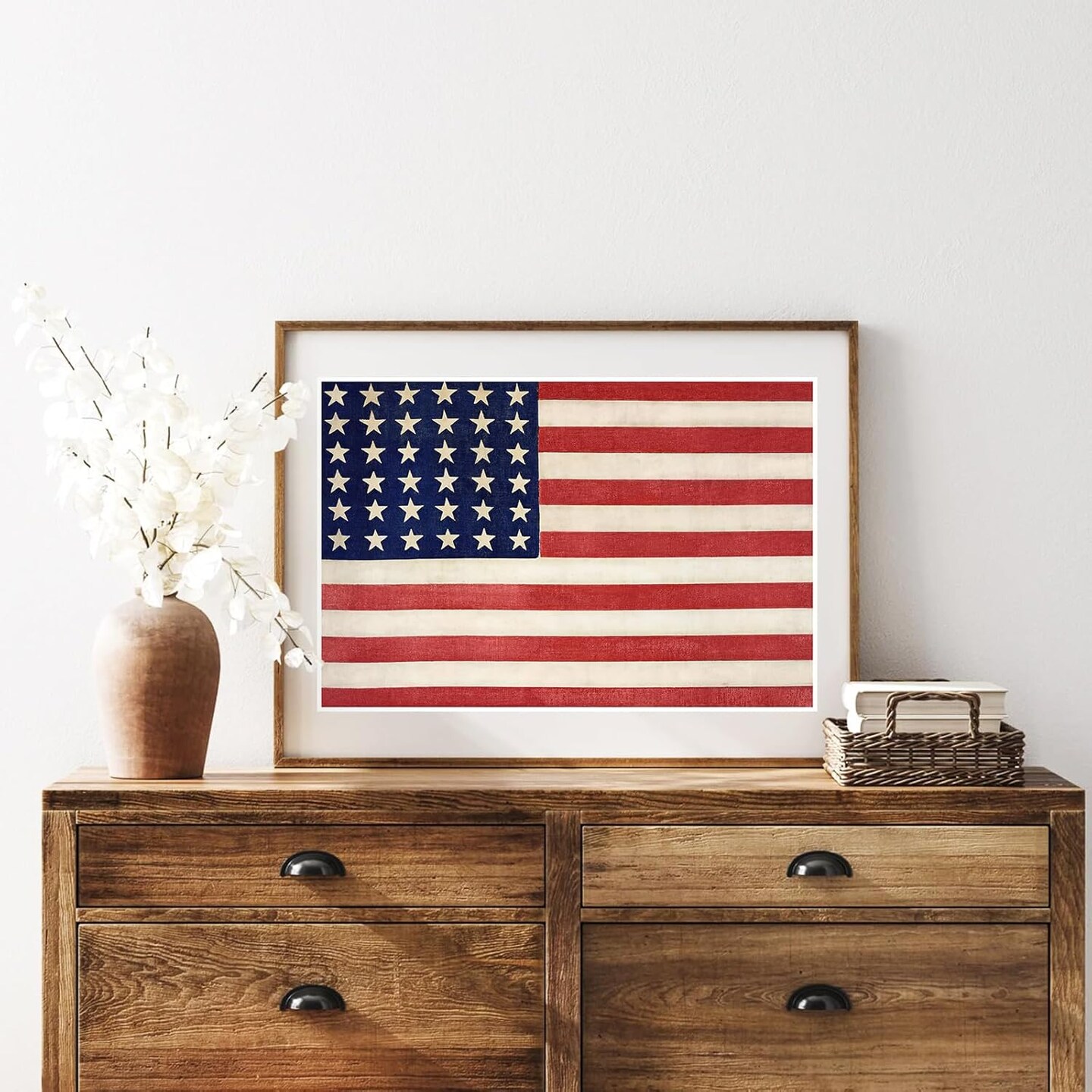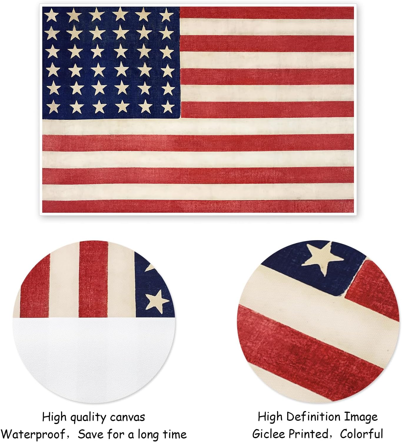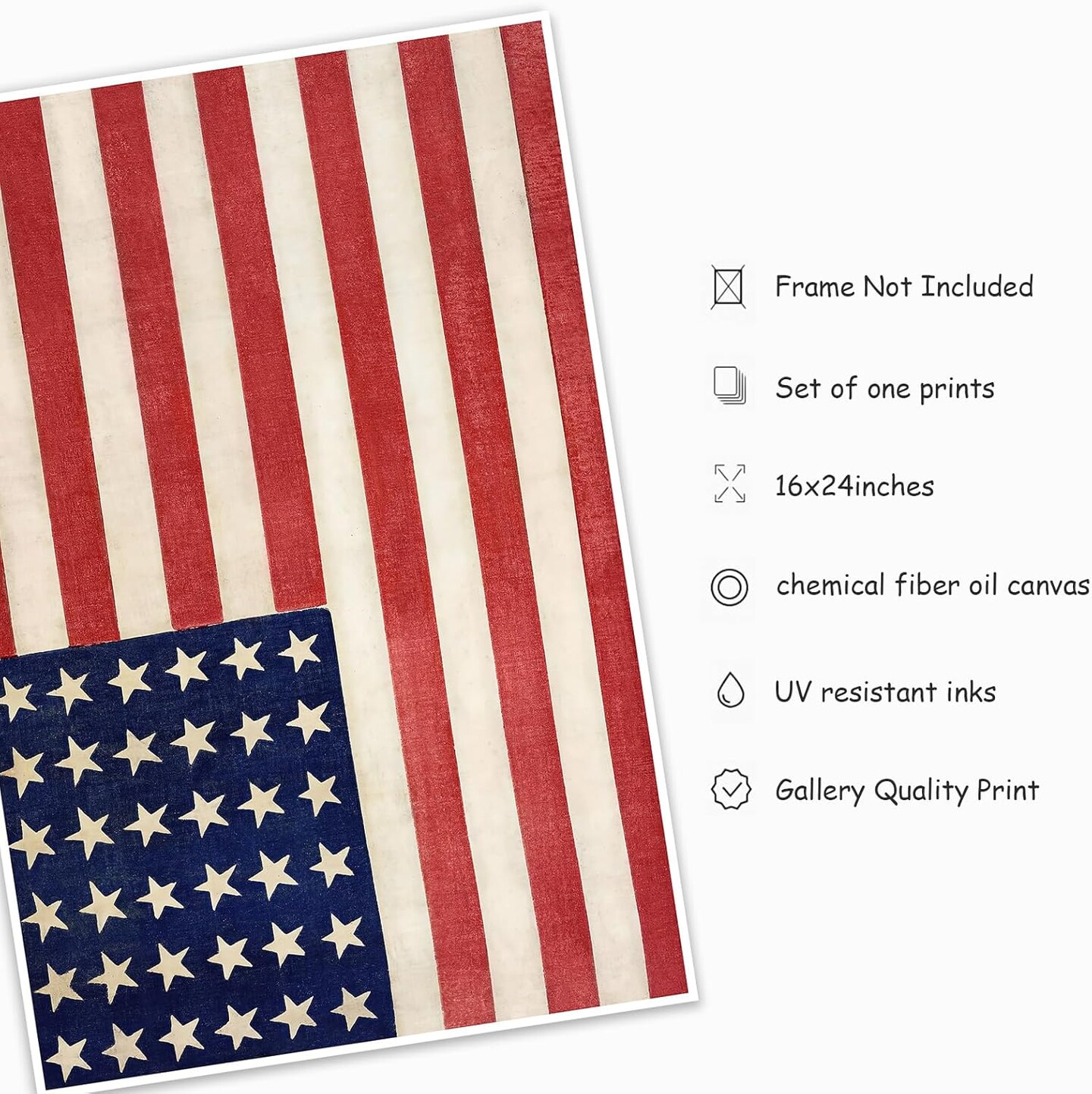 Patriotic Canvas Wall Art Print Vintage 4th of July American Flag Art Poster Independence Day Room Decor for Gallery Living Room Bedroom (UNFRAMED 16 x 24 Inch)