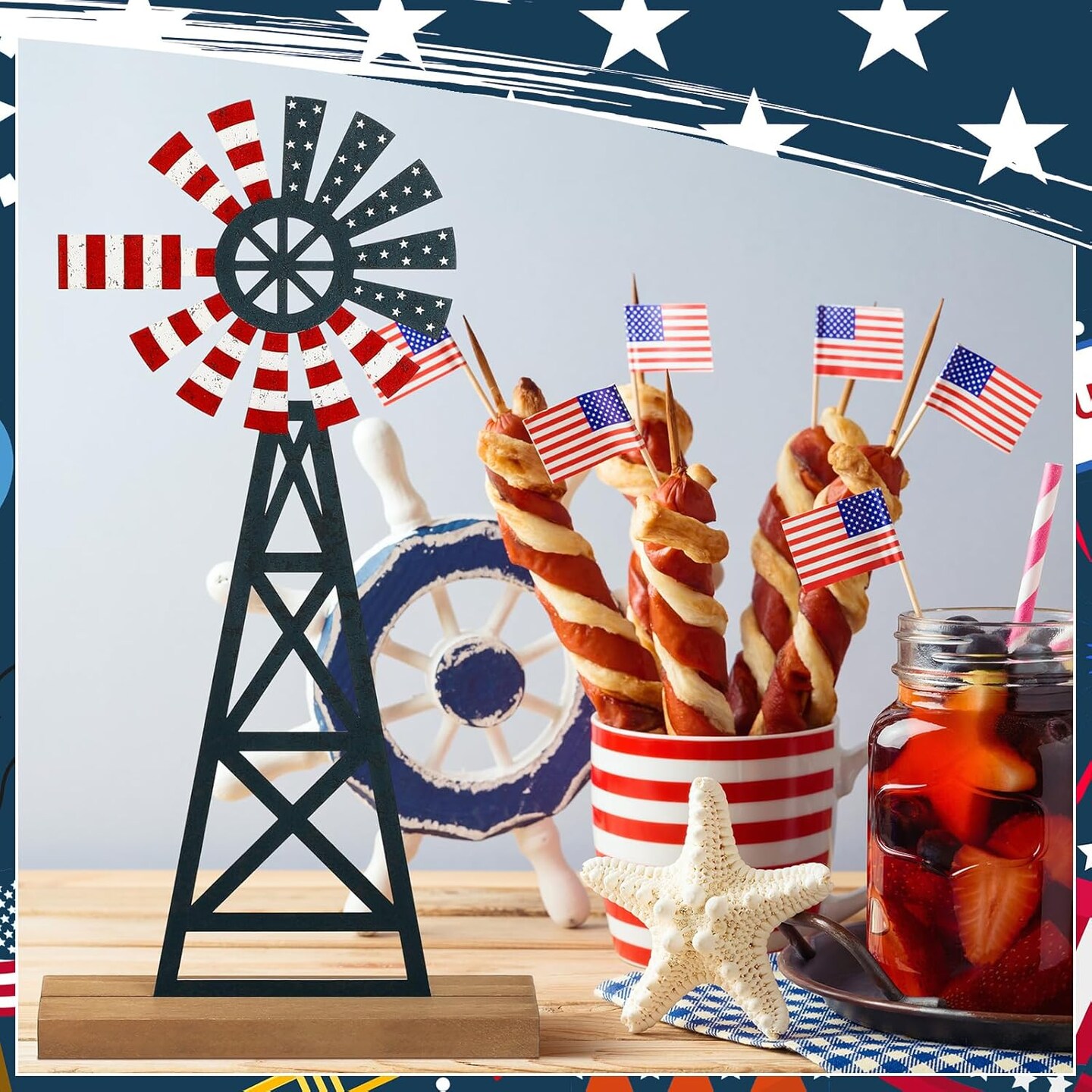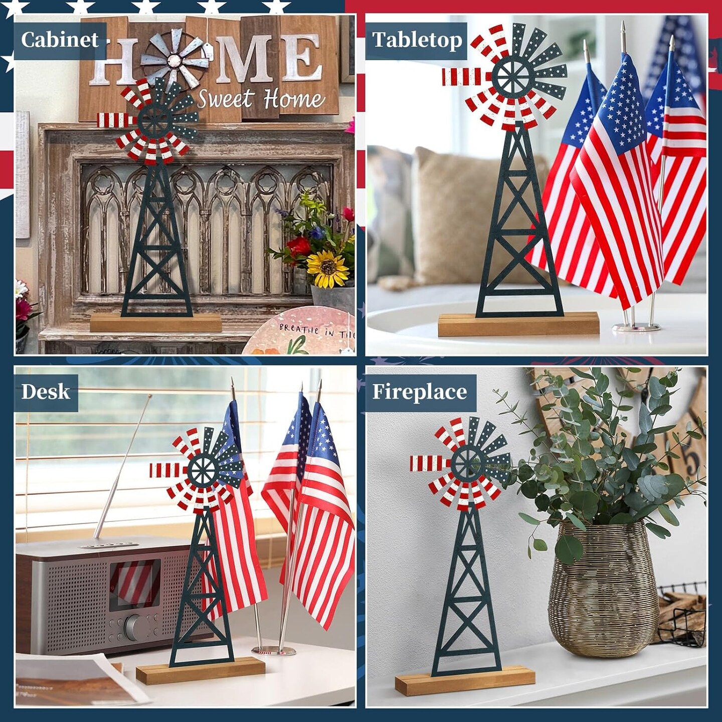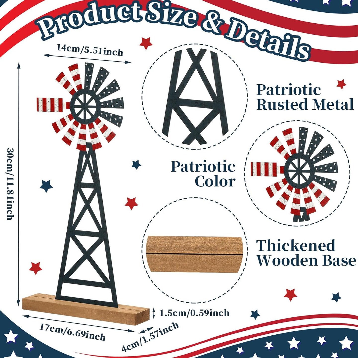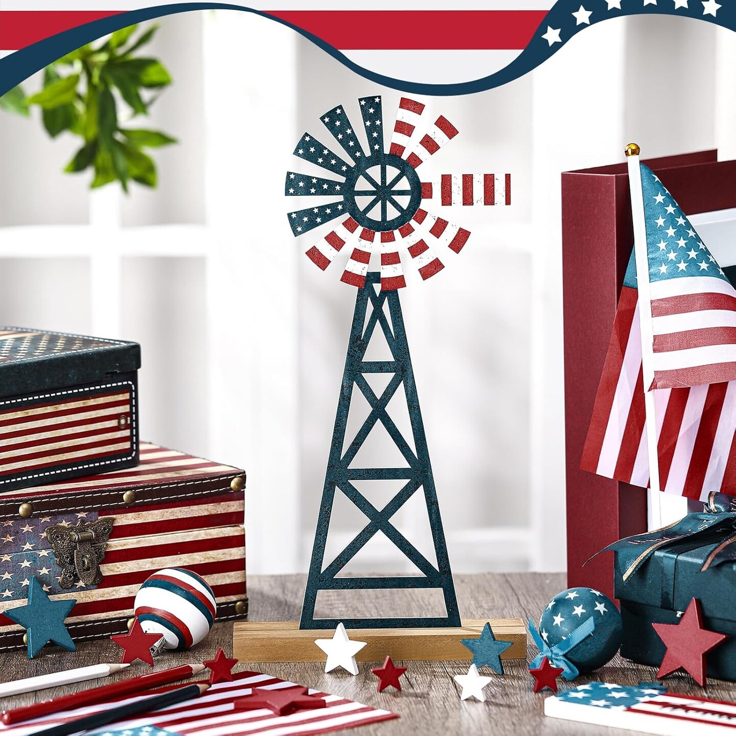 Patriotic Farmhouse Windmill Table Top 11.8 Inch Metal Rusted 4th of July