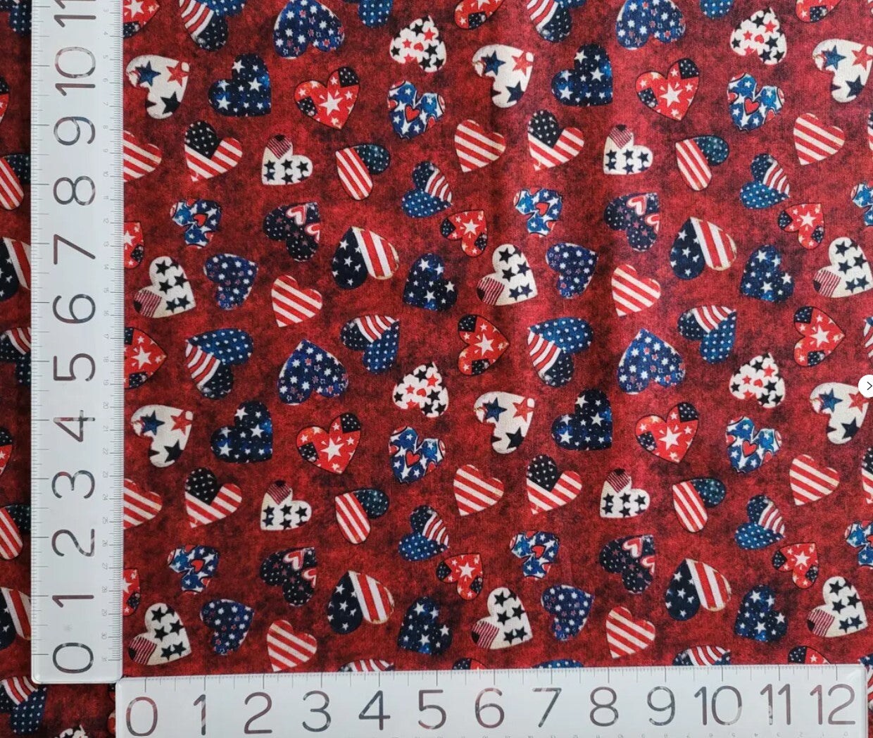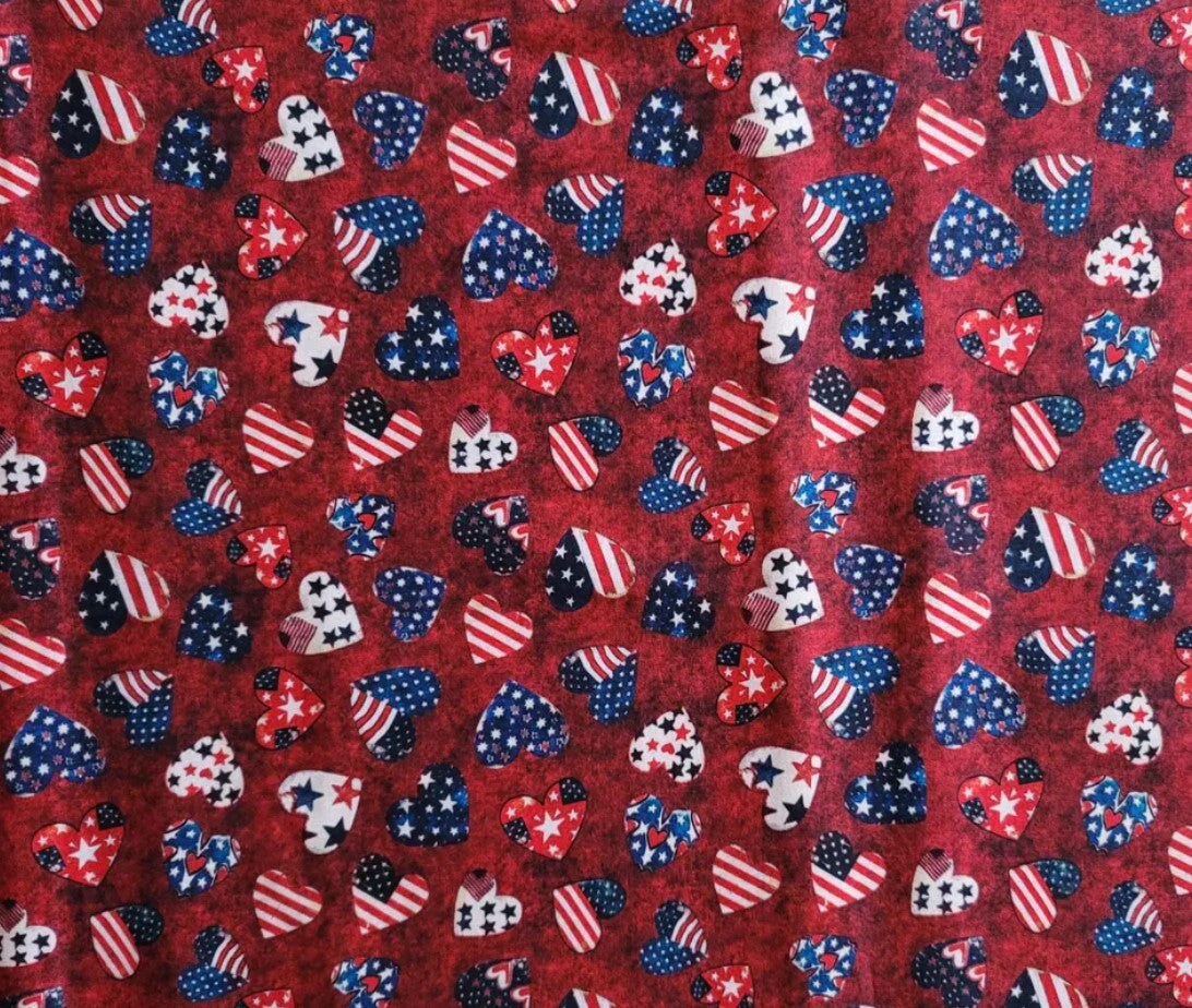 Patriotic Flag Hearts on Red Digital Print 100% Cotton Price per Yard