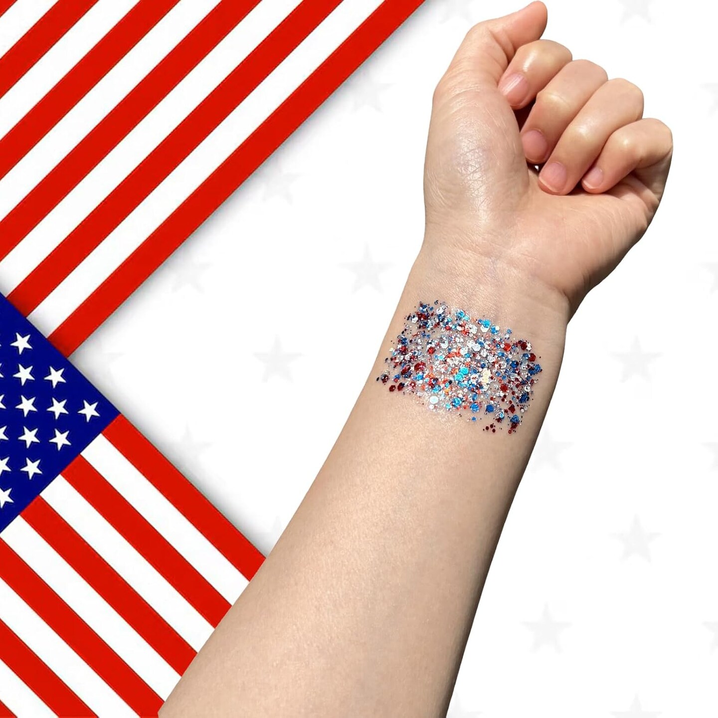 Patriotic Red White and Blue Body Glitter Stick,4th of July Accessories,Sparkling Face Hair Glitter for Fourth of July Outfit Women Kids,American Pride USA Flag Makeup for Independence Day