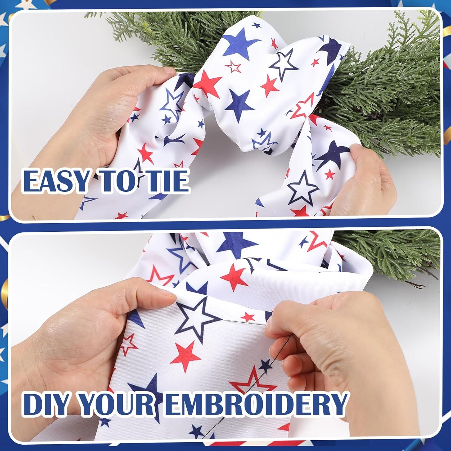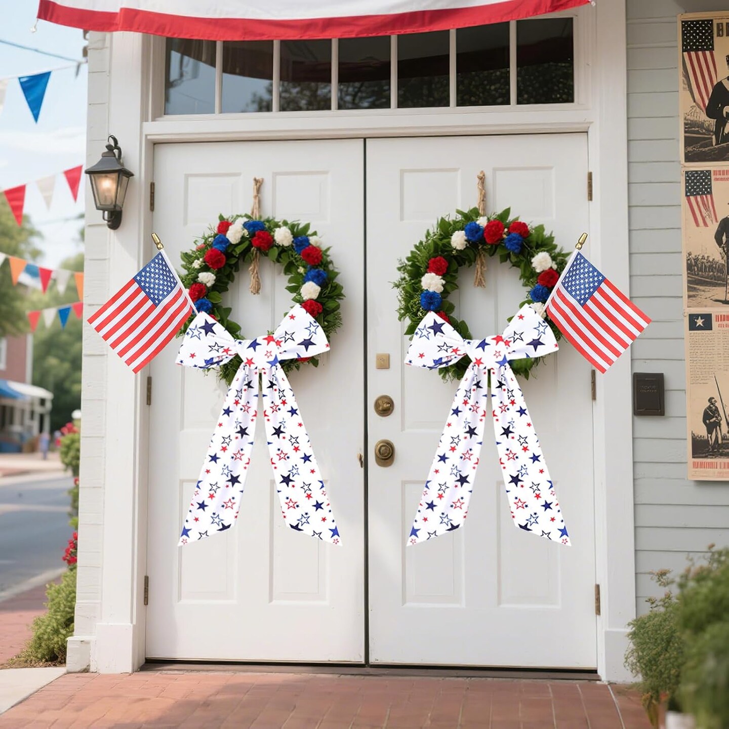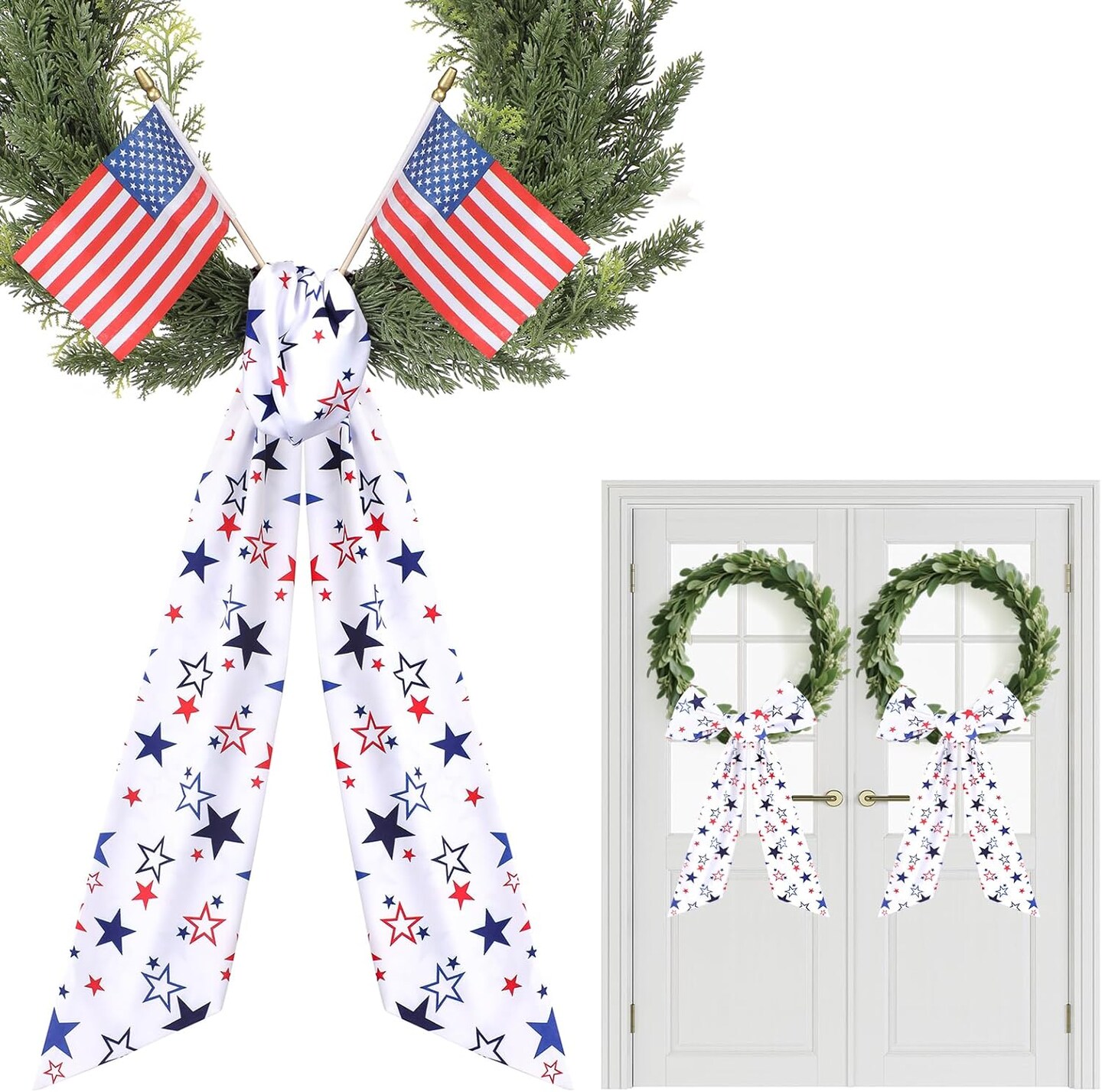 Patriotic Sash for Wreath Front Door - 2 Pcs 4th of July Wreath Sash with 2 Pcs American Flags for Memorial Day