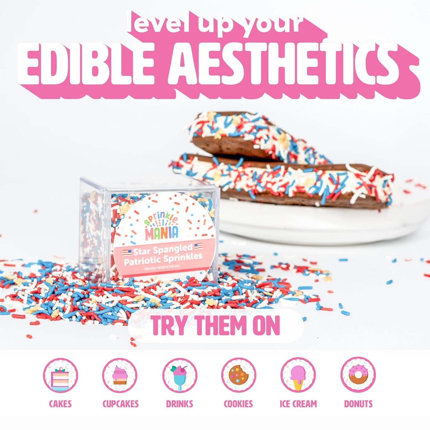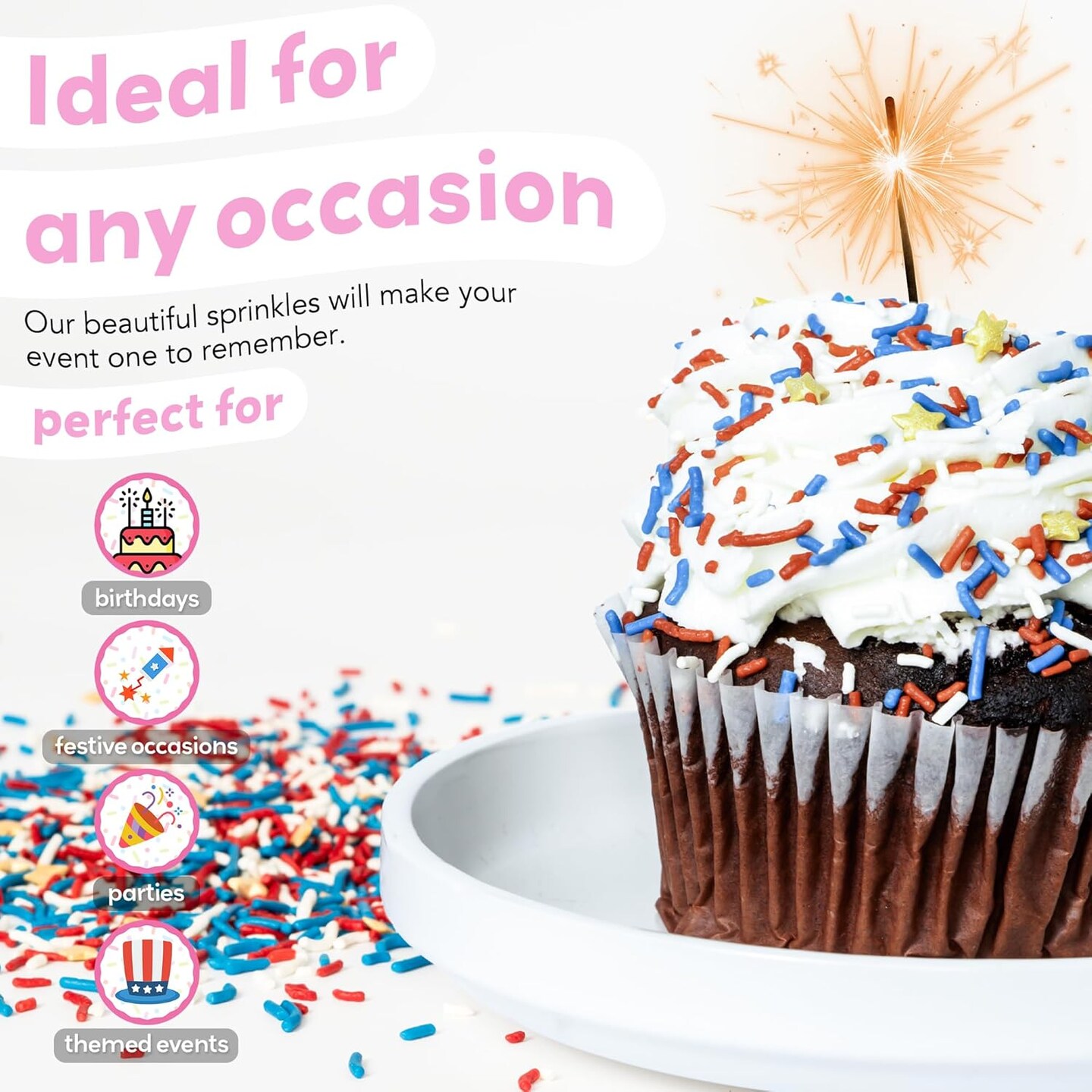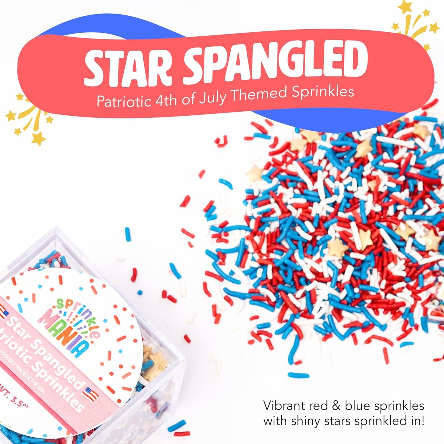 Patriotic Sprinkles for Cake Decorating – Proudly made in the USA to make 4th of July and Memorial Day Treats Pop with our Red, White & Blue Cupcake Sprinkles - Festive Holiday Baking Supplies (3.5oz)
