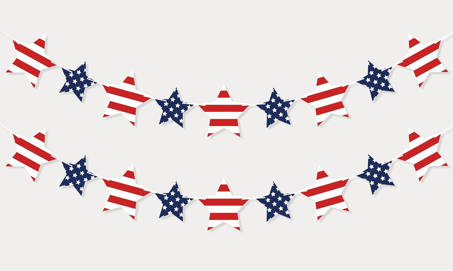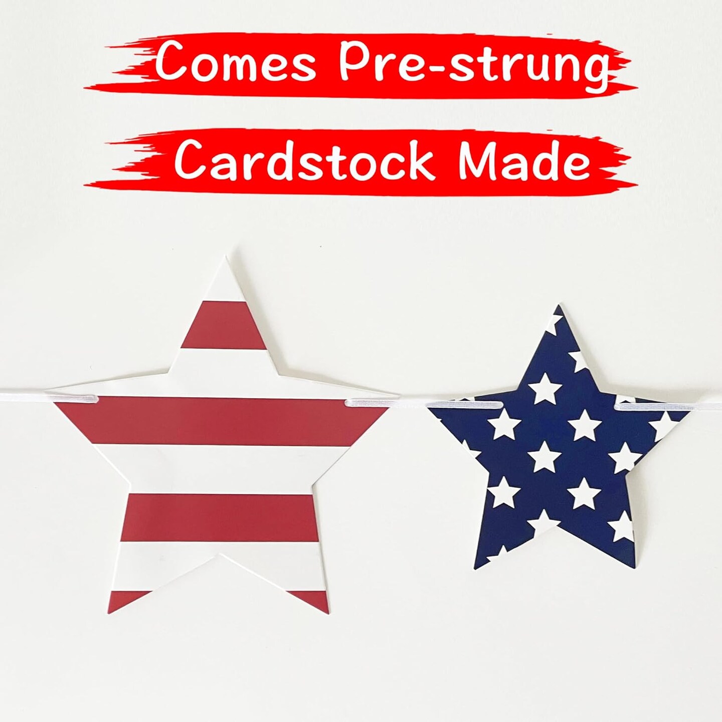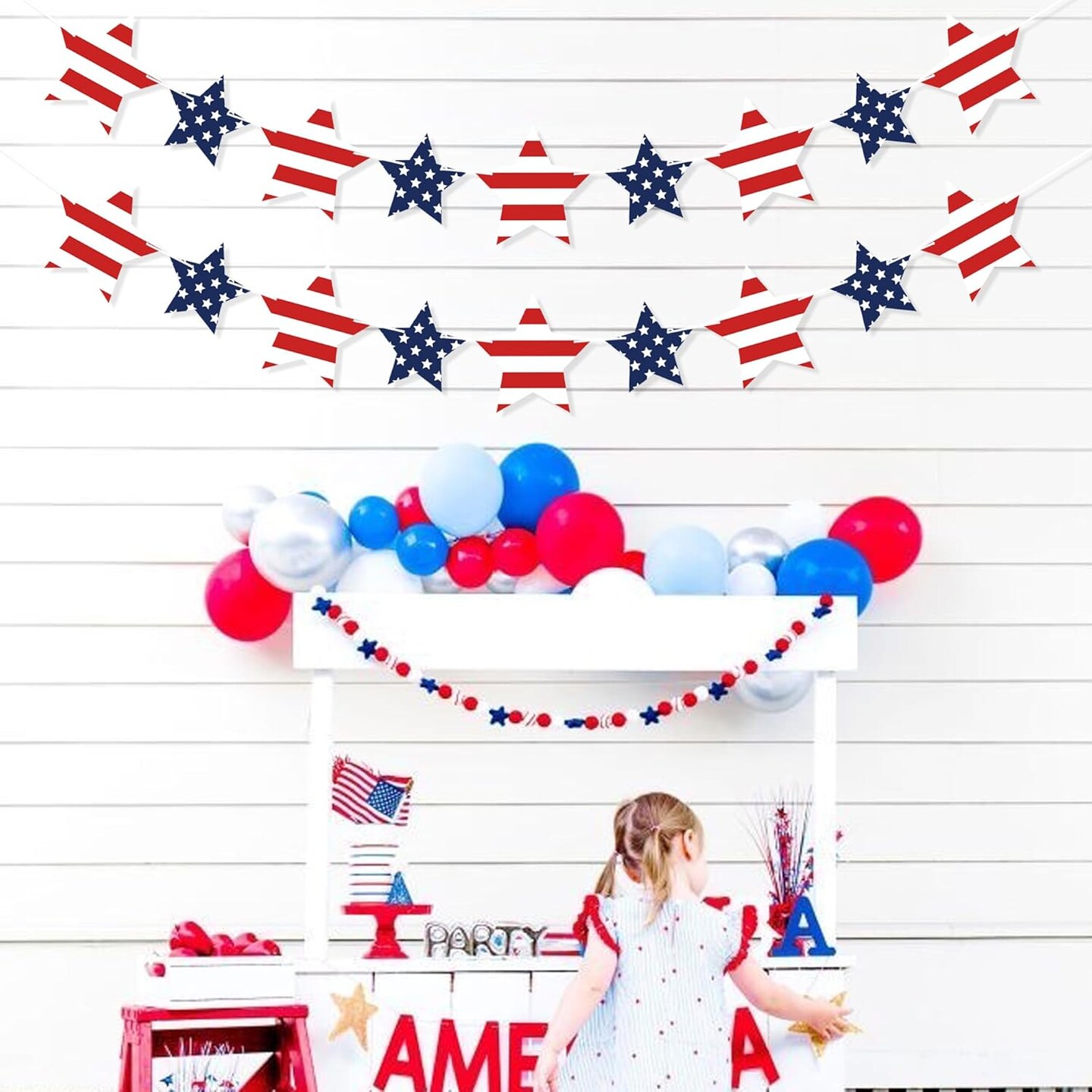 Patriotic Star Garland Banner for 4th of July Decorations, Red White Blue Stars Bunting
