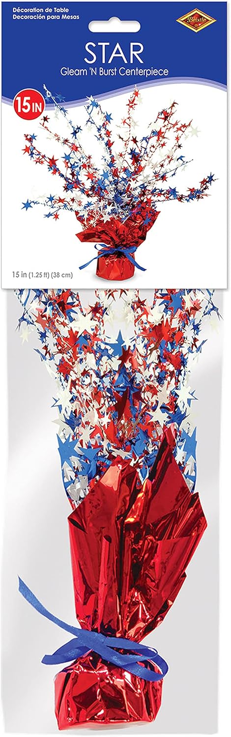 Patriotic Star Gleam ‘N Burst Centerpiece, 15” – Metallic USA 4th of July Table Decorations in Red White and Blue