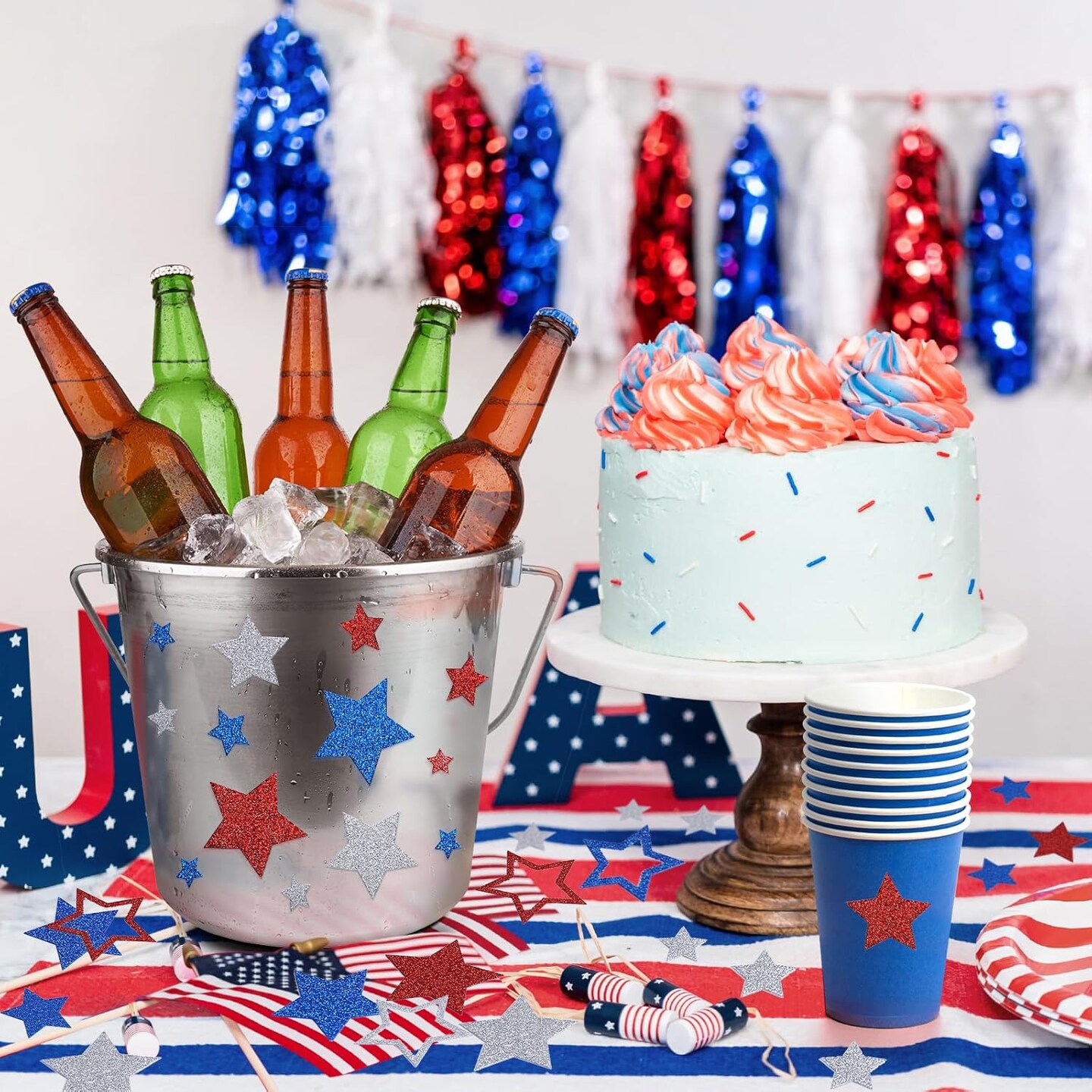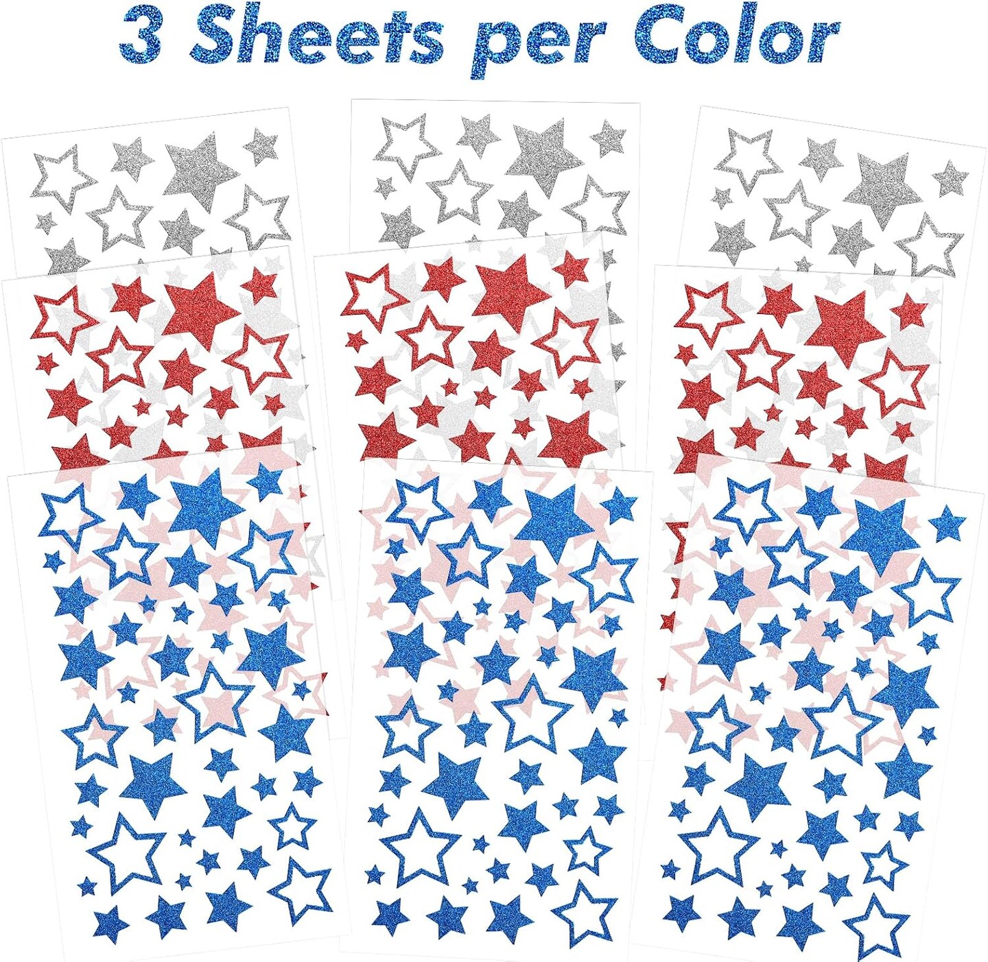 Patriotic Star Stickers, 9 Sheets Glitter Red Blue Sliver Star Stickers