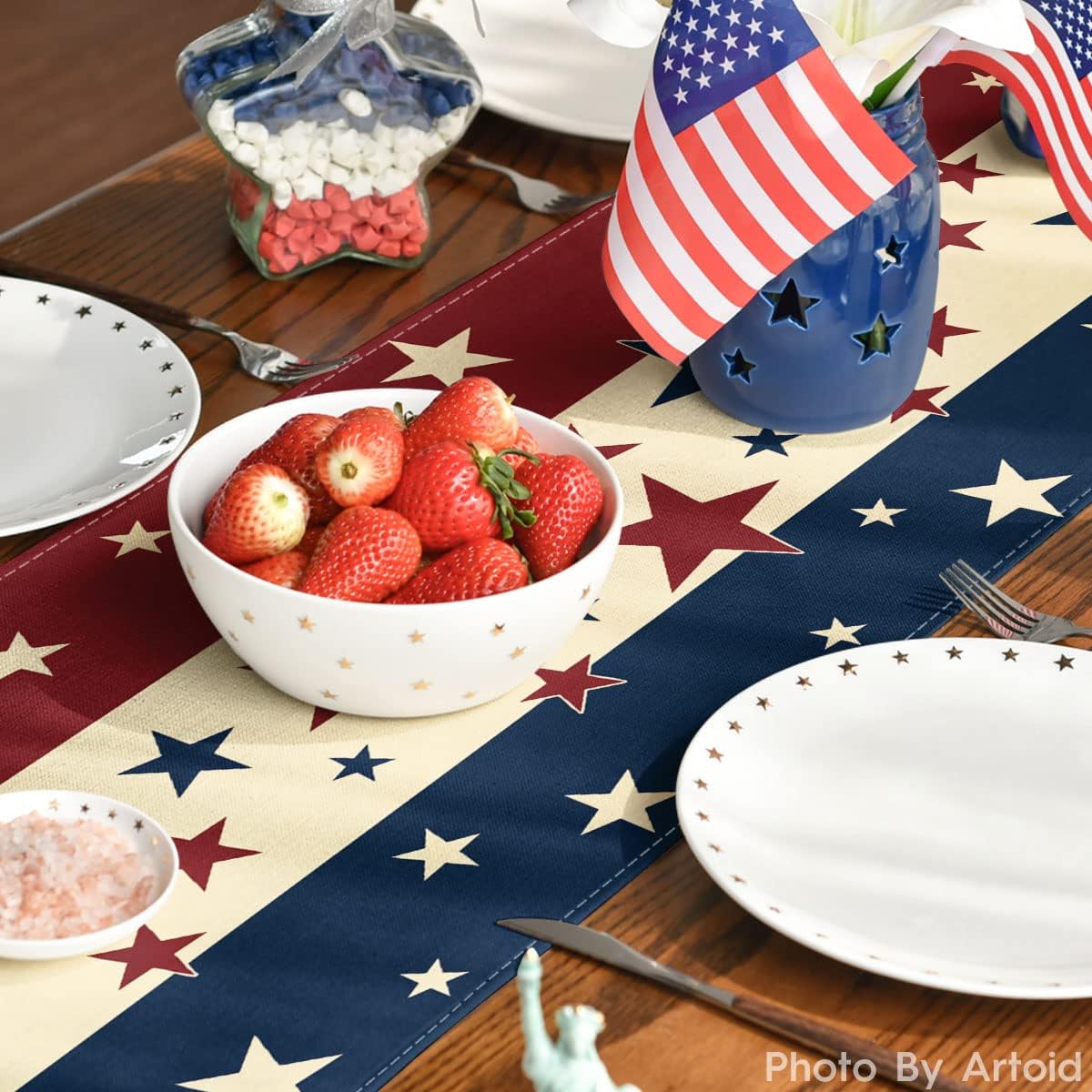 Patriotic Stars & Stripes Table Runner – Red, White, and Blue Design for 4th of July, Memorial Day, and Independence Day. Perfect Kitchen and Dining Table Decoration for Home, Parties, and Holiday Celebrations. 13 x 72 Inches.