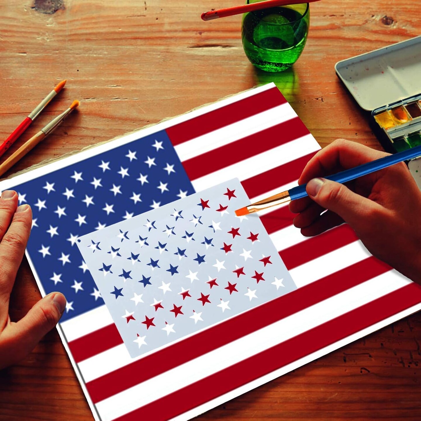 Patriotic Stencils - 12 Pieces American Flag 50 Star Stencil Templates (6 Sizes)
