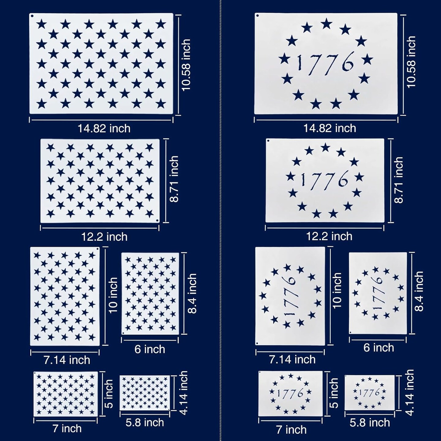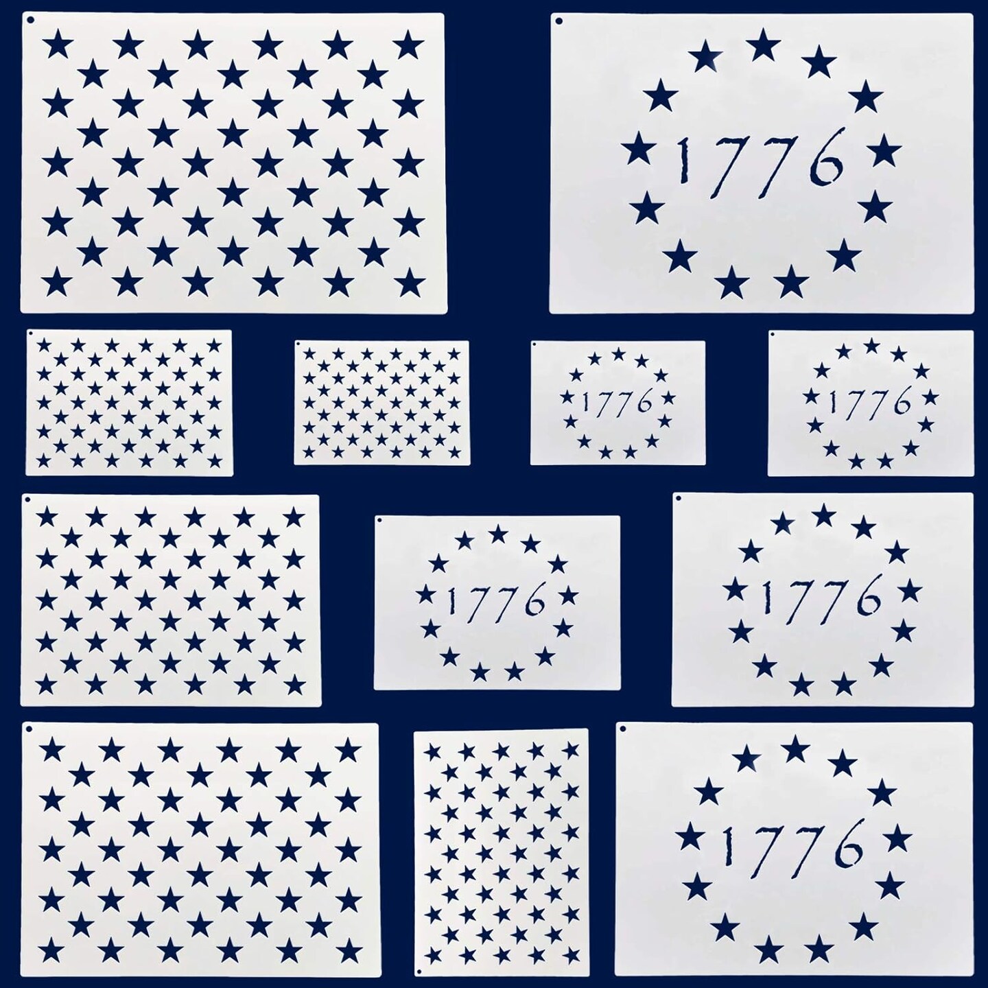 Patriotic Stencils - American Flag Star Stencils - (6 Sizes, 2 Styles)