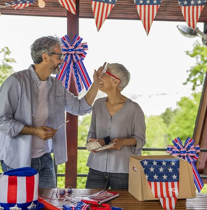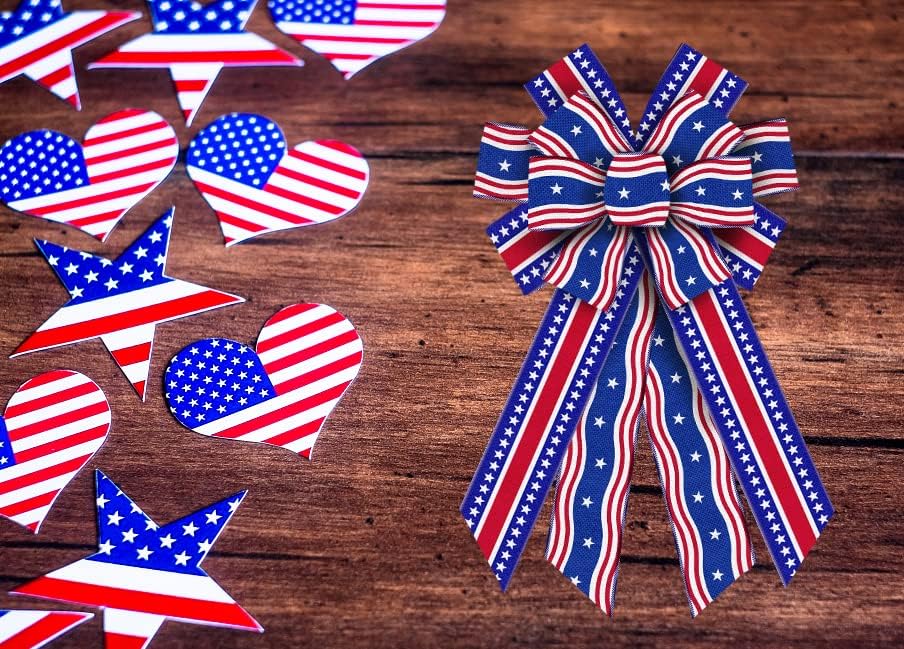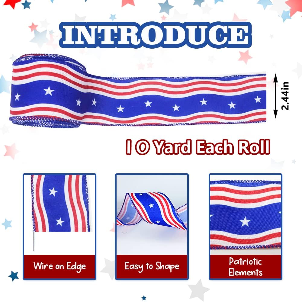 Patriotic Wired Edge Ribbon – 2.5" x 10 Yards Red, White & Blue Stars & Stripes Ribbon for Veterans Day, 4th of July, Labor Day, DIY Crafts, Wreaths & Gift Wrapping