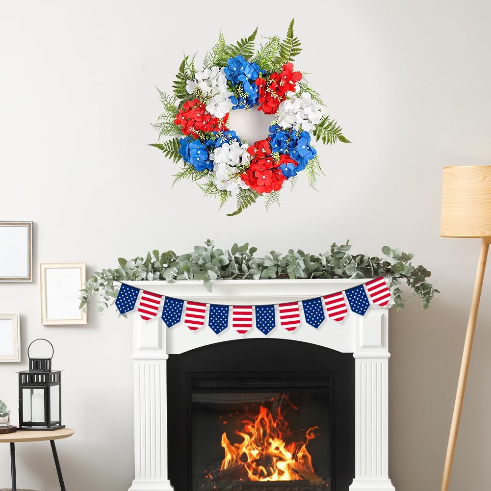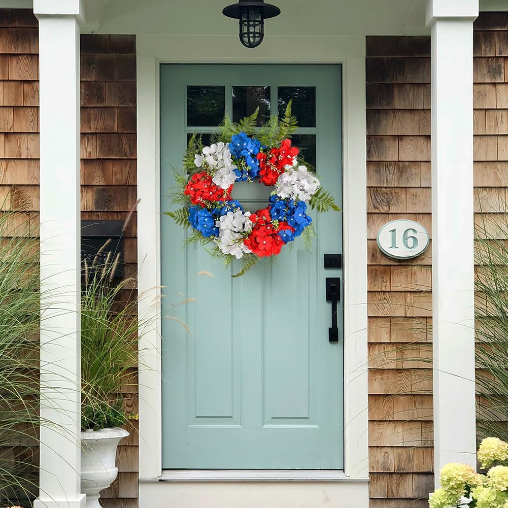 Patriotic Wreath Decorations for Front Door, 20 Inch Red White Blue Hydrangea 4th of July Independence Day Wreaths