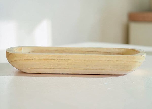 Paulownia Wood Oval Tray Decorative Dough Bowl Style Centerpiece Tray-AW212918
