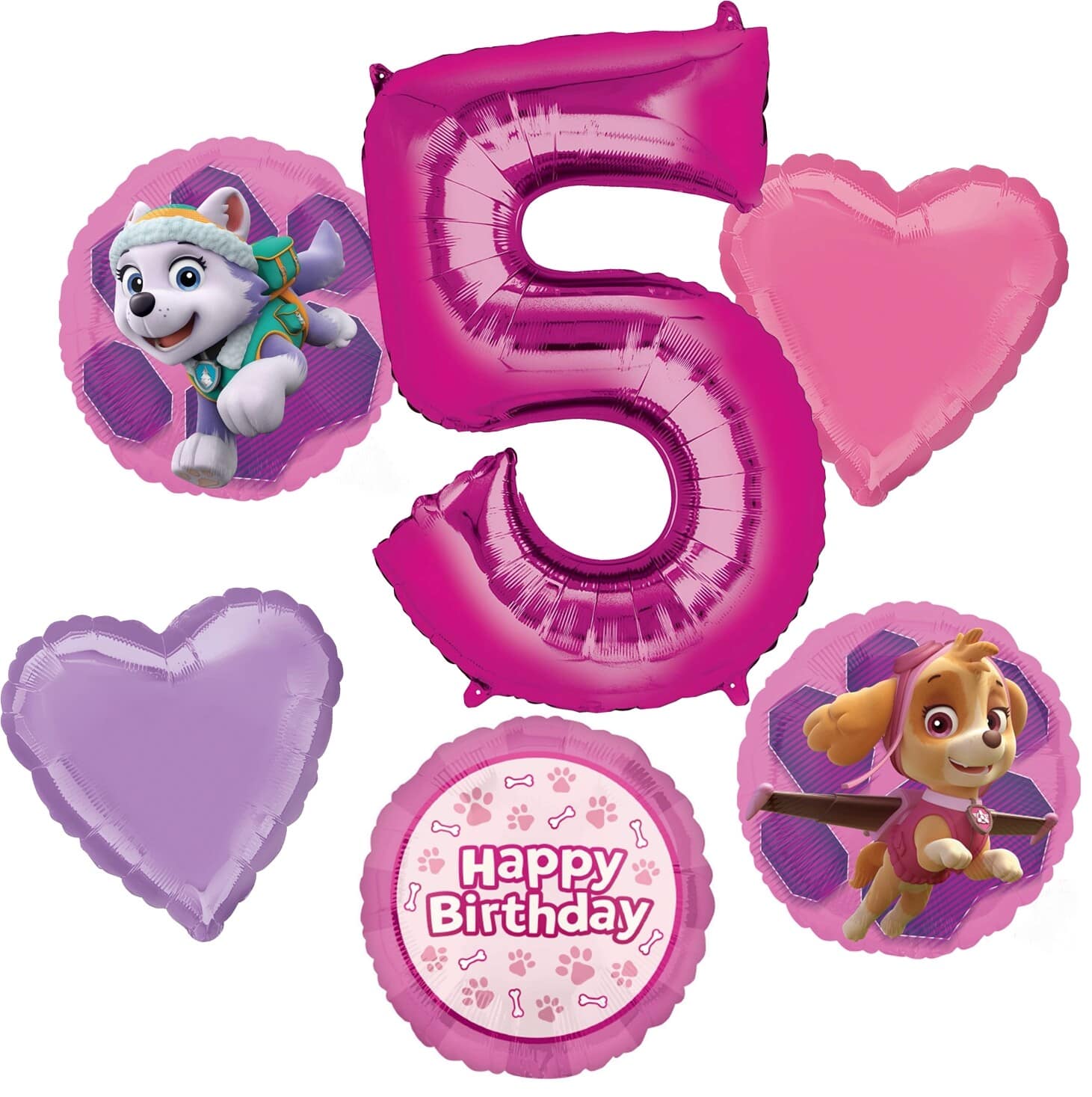 Paw Patrol Pink Birthday Age 6-Piece Foil Balloon Bouquet