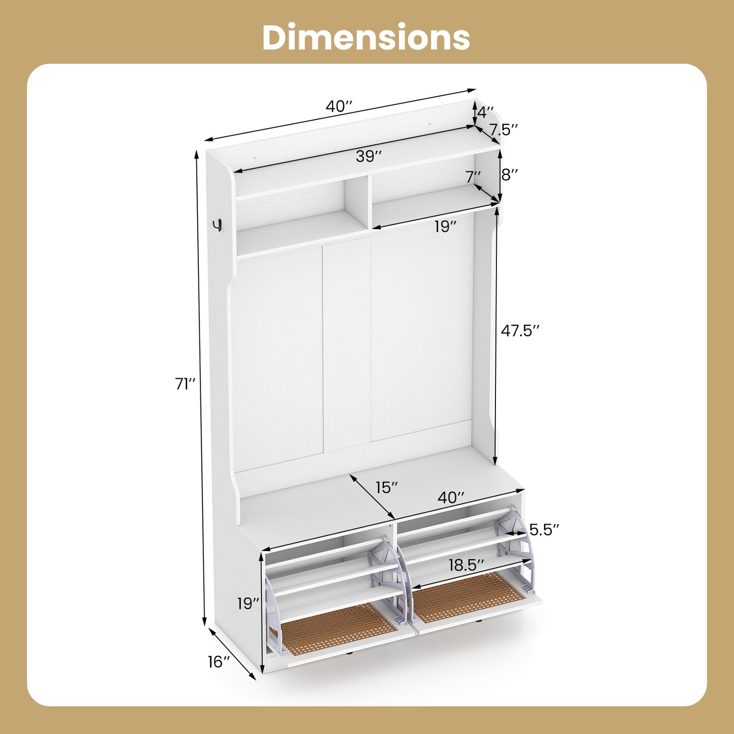 PE Rattan Hall Tree with Bench, Hooks and Storage