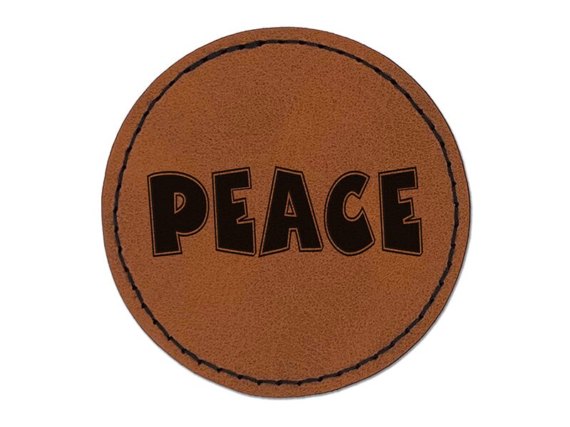 Peace Fun Text Round Iron-On Engraved Faux Leather Patch Applique - 2.5"