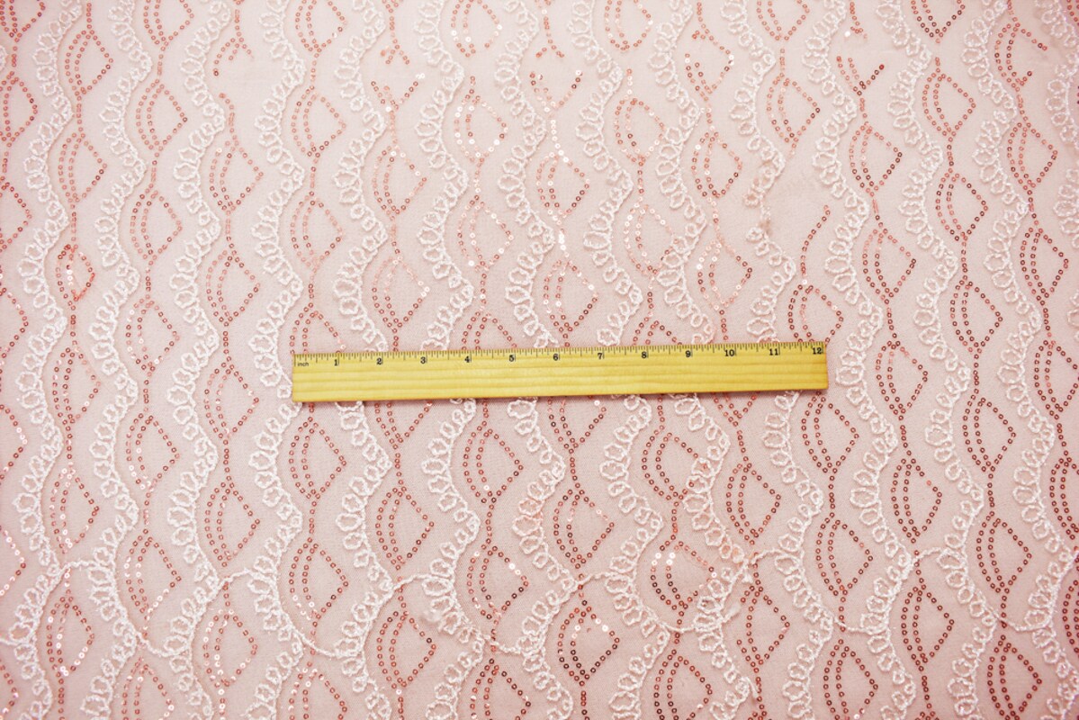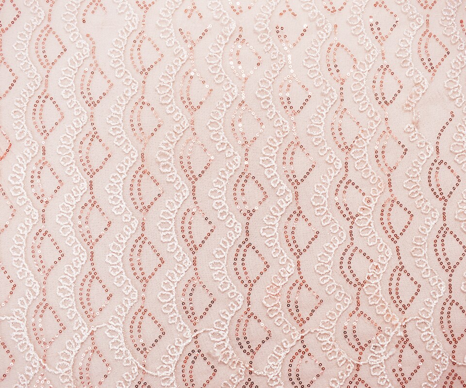 Peach Coral-White Nylon Loop Thread Embroidery Sequined Mesh Tulle Fabric By the Yard
