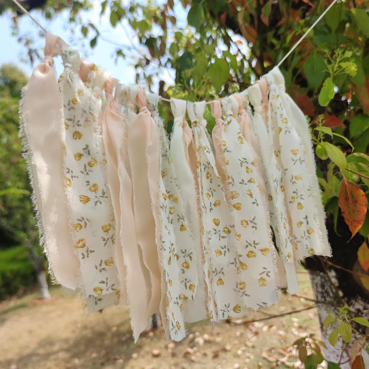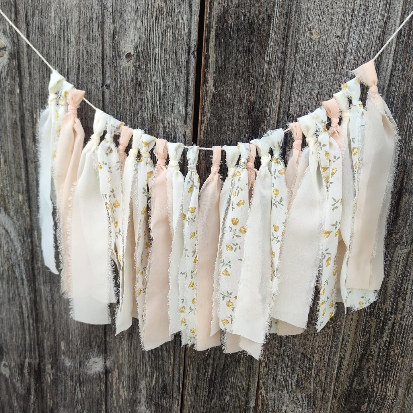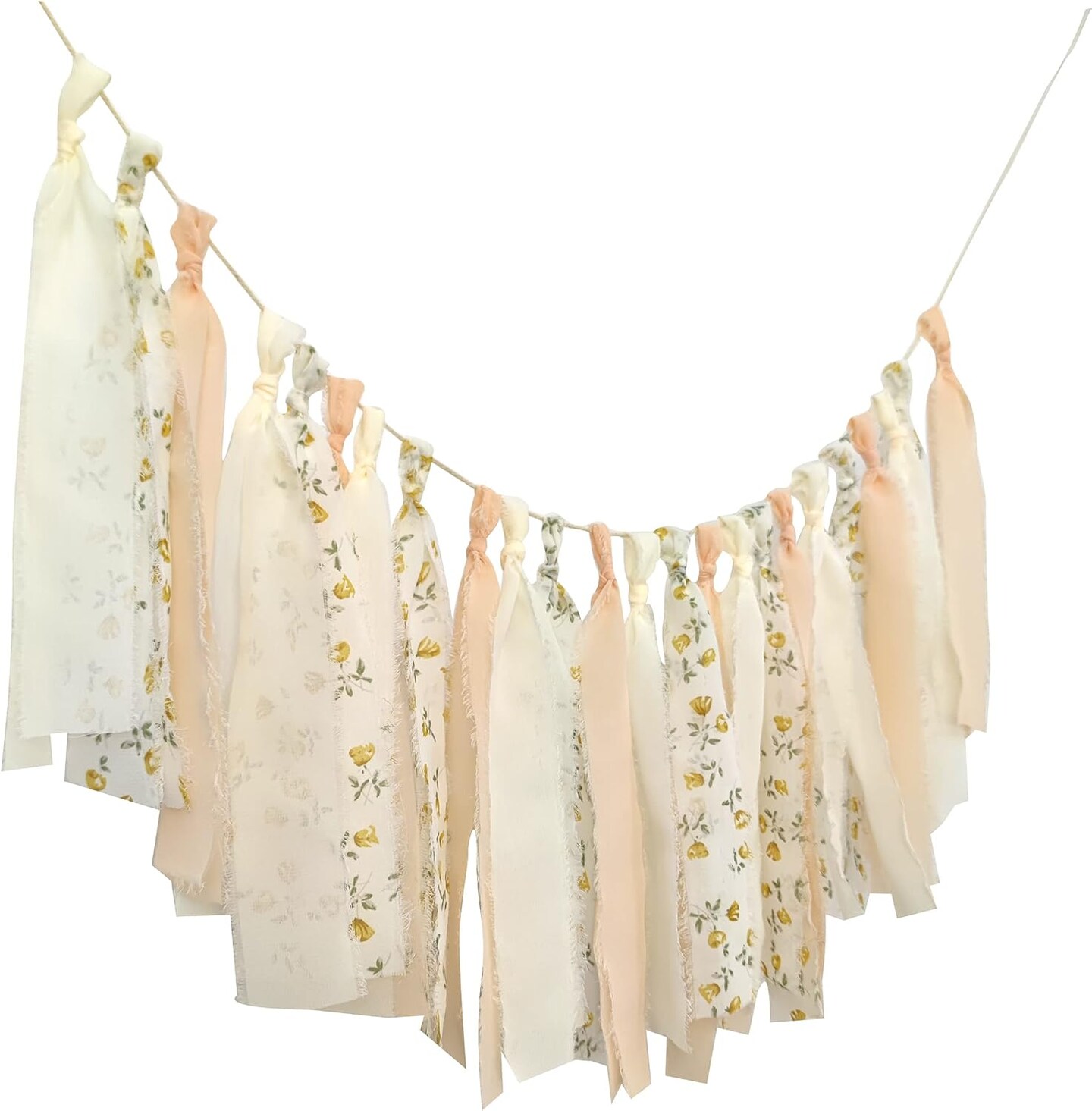 Peach Floral Chiffon Tassel Garland – Hanging Backdrop Décor for Wedding, Birthday, Bridal Shower, Bachelorette, Engagement Party & Photo Booth Room Decorations