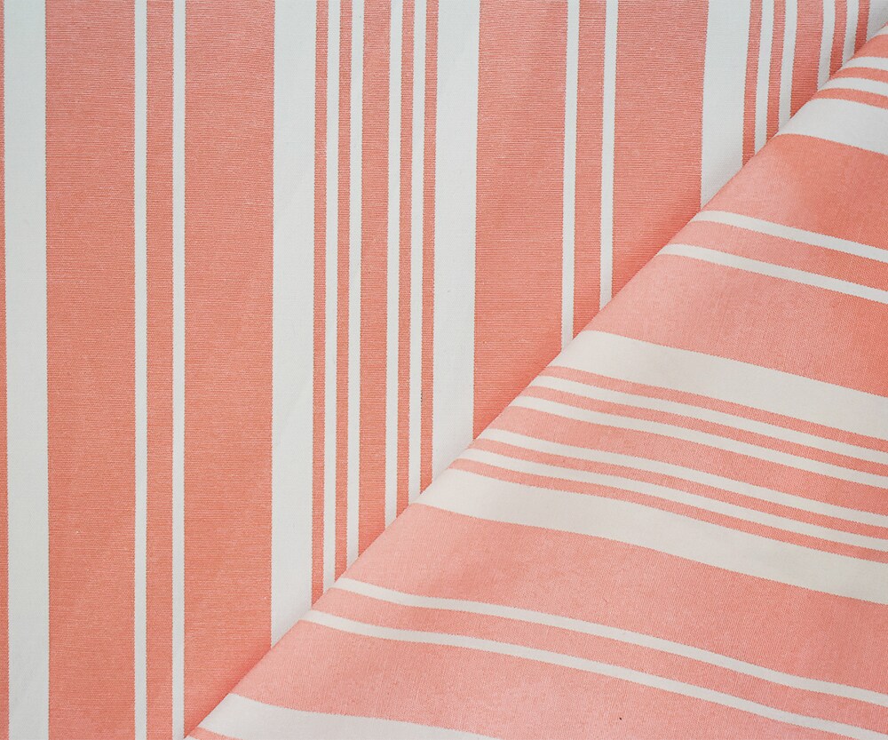 Peach Orange-White Polyester Cotton Striped Shirting Woven Fabric By the Yard