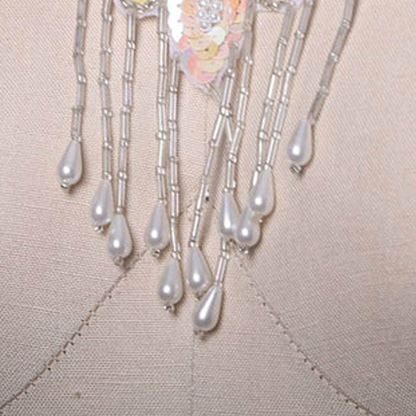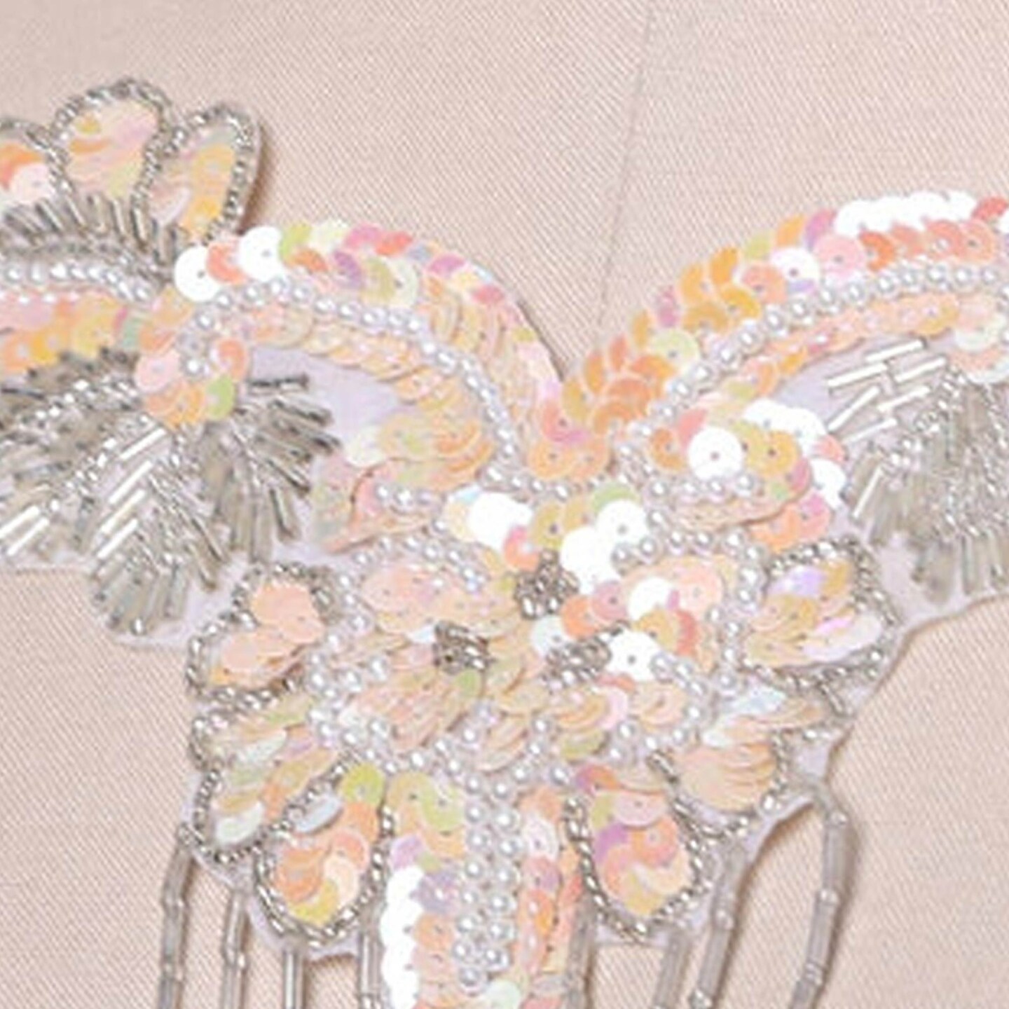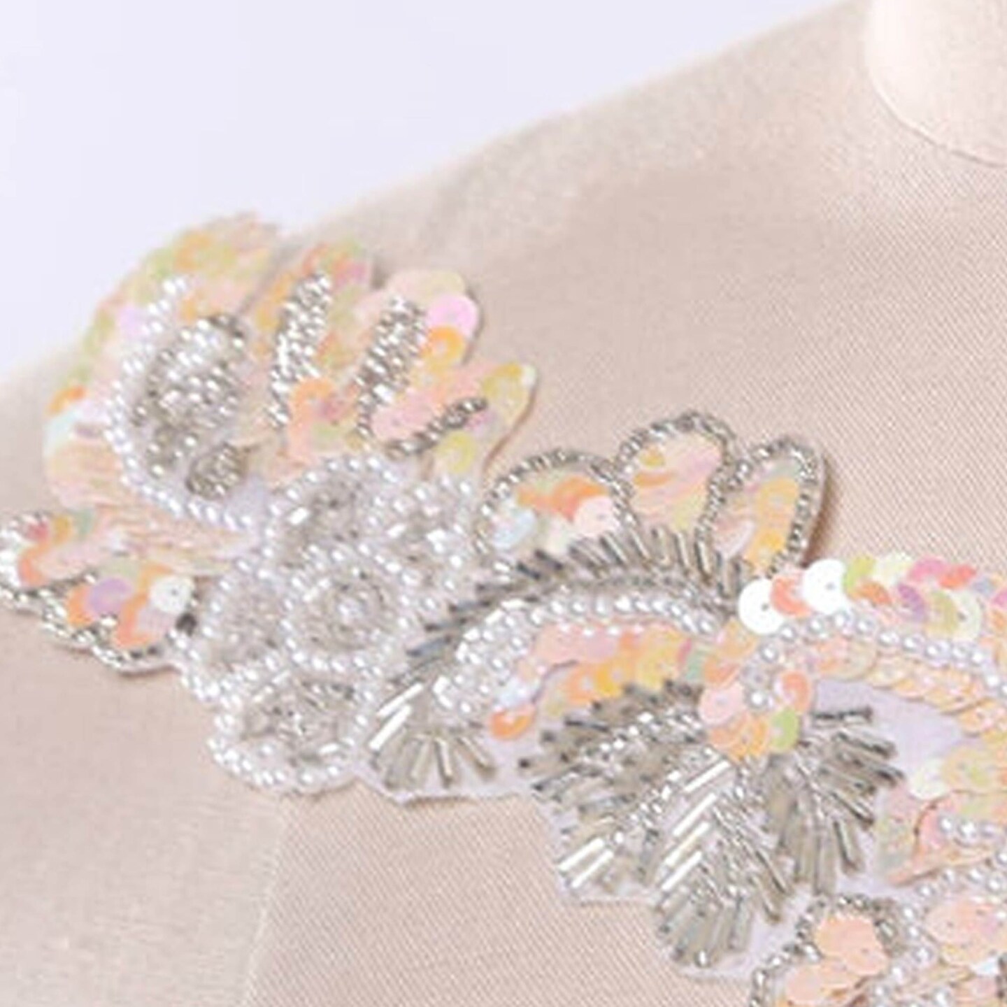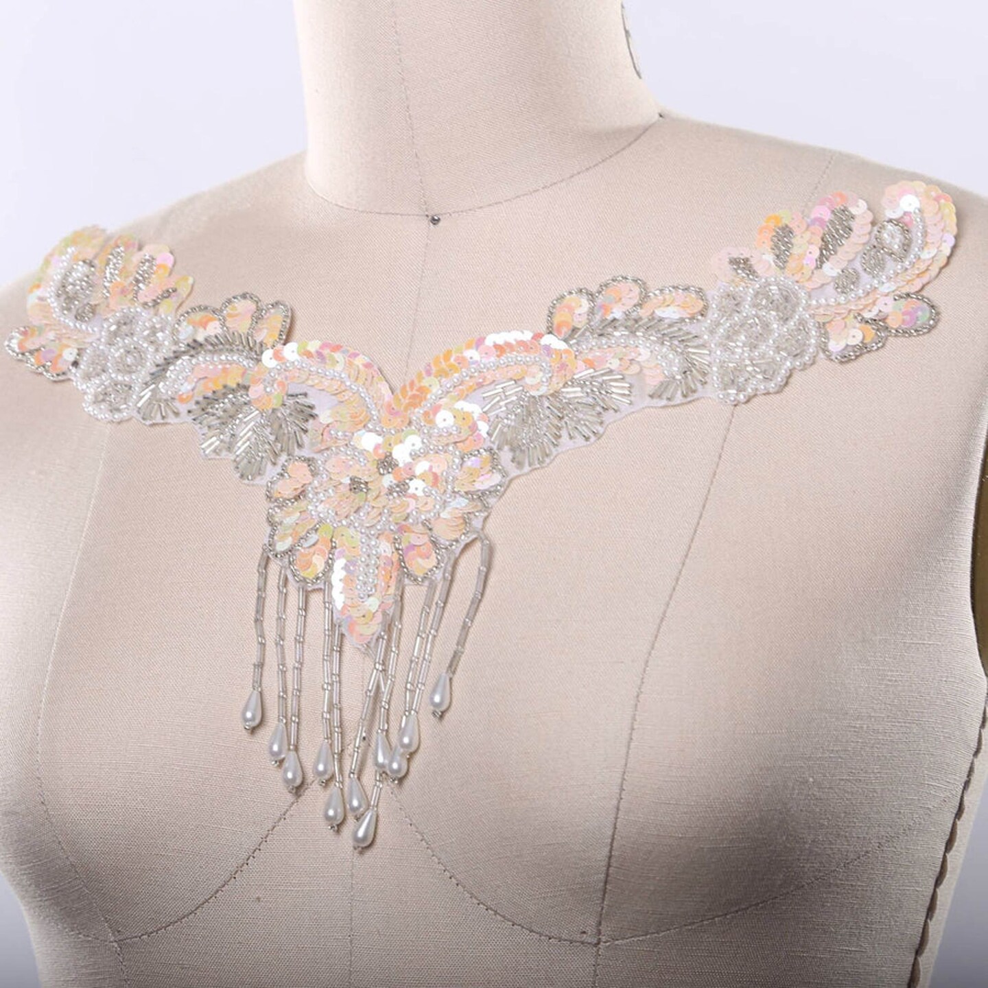 Peach Sequin Beaded Fringe Applique Patch With Rhinestone Neckline Design