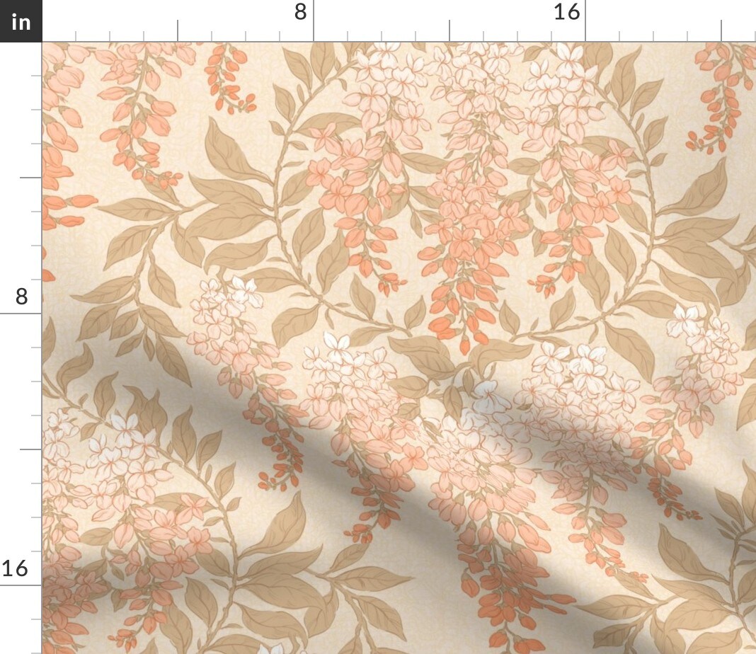 Peach Vintage Floral Traditional Botanical Custom Printed Fabric by Spoonflower Various Fabrics by the Yard or Fat Quarter
