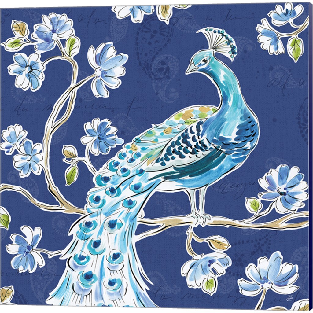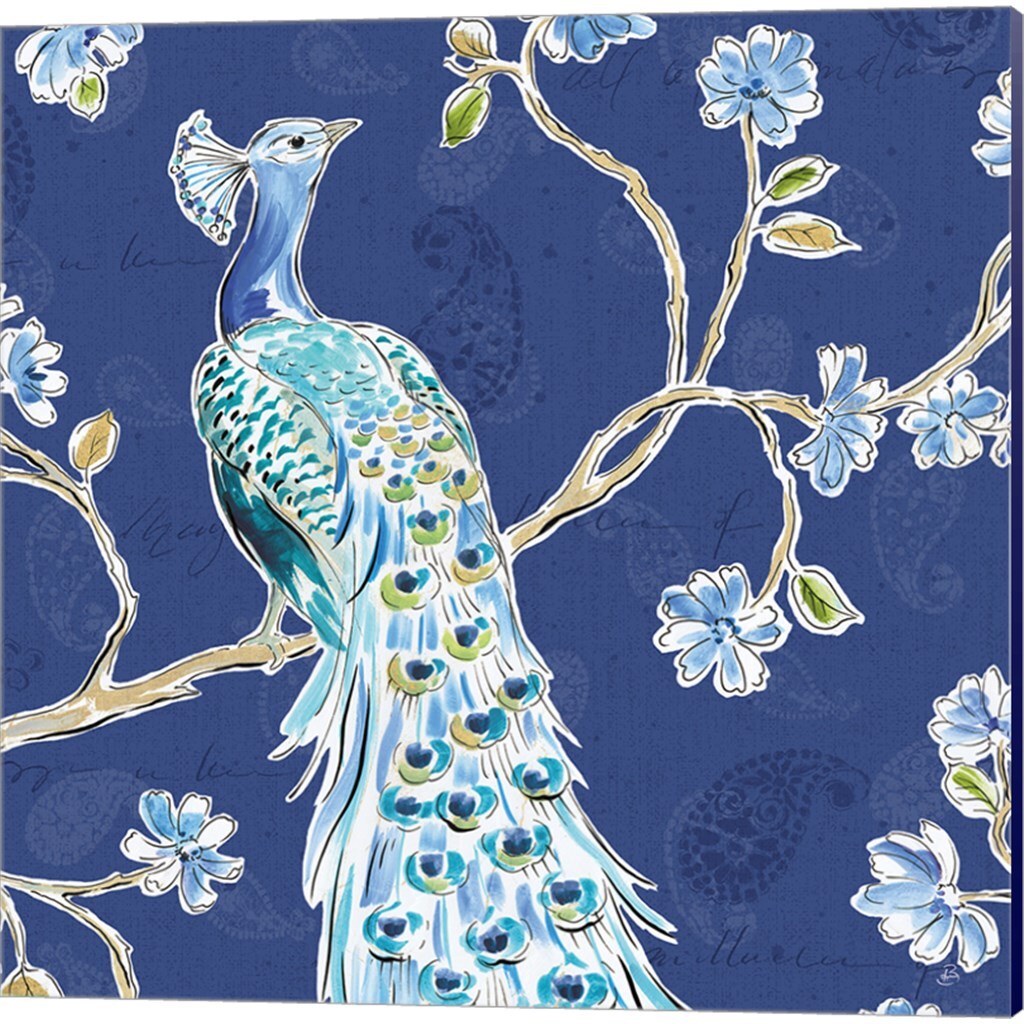 Peacock Allegory Blue by Daphne Brissonnet 14" x 14" Canvas Wall Art (Set of 2)