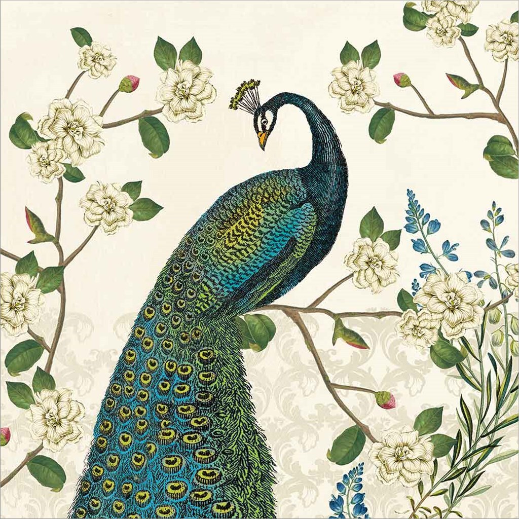 Peacock Arbor I Ivory v2 by Sue Schlabach 12" x 12" Canvas Wall Art