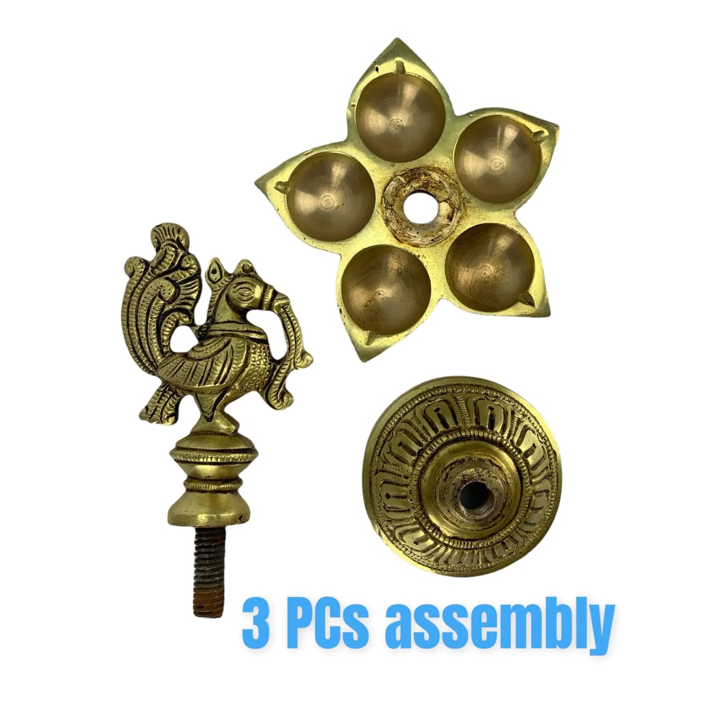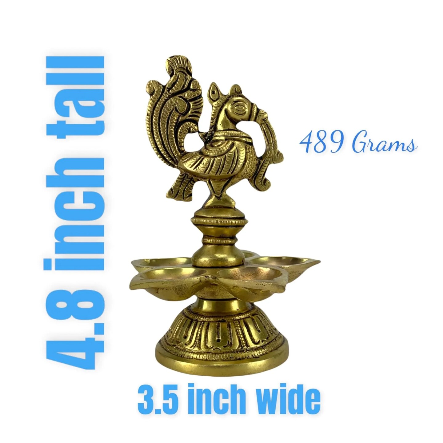 Peacock Deepam Brass Finish Diya Annam Deepak Samai Oil Lamp with Base Indian Festival Diwali Diya Hindu Puja Religious Home Decor Pooja Lamp Indian Housewarming Wedding Return Gift