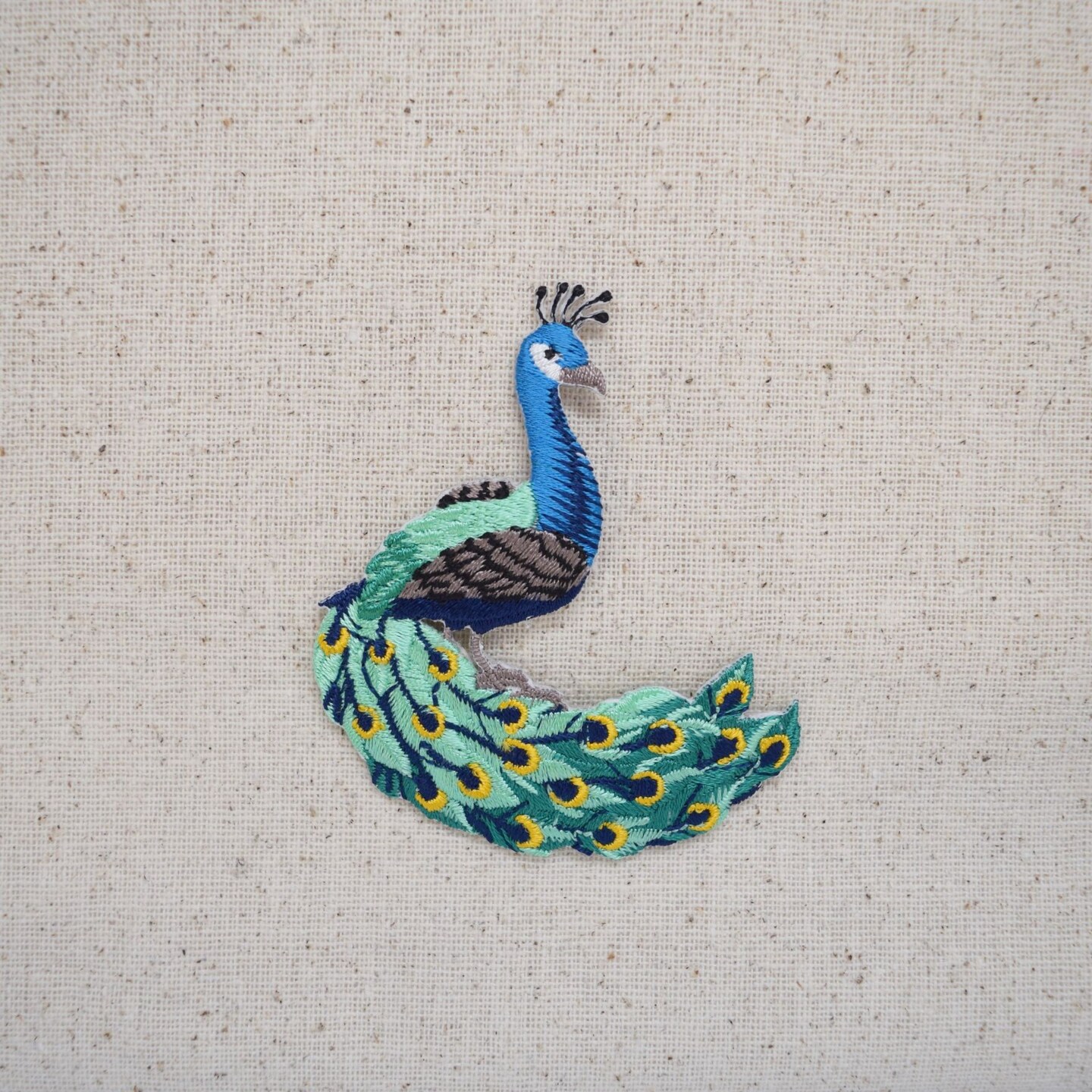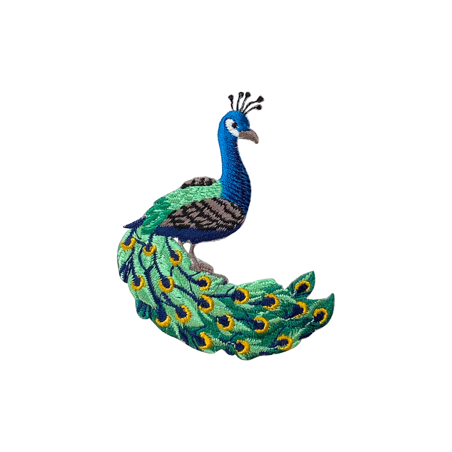 Peacock Facing Right, Birds, Embroidered, Iron on Patch