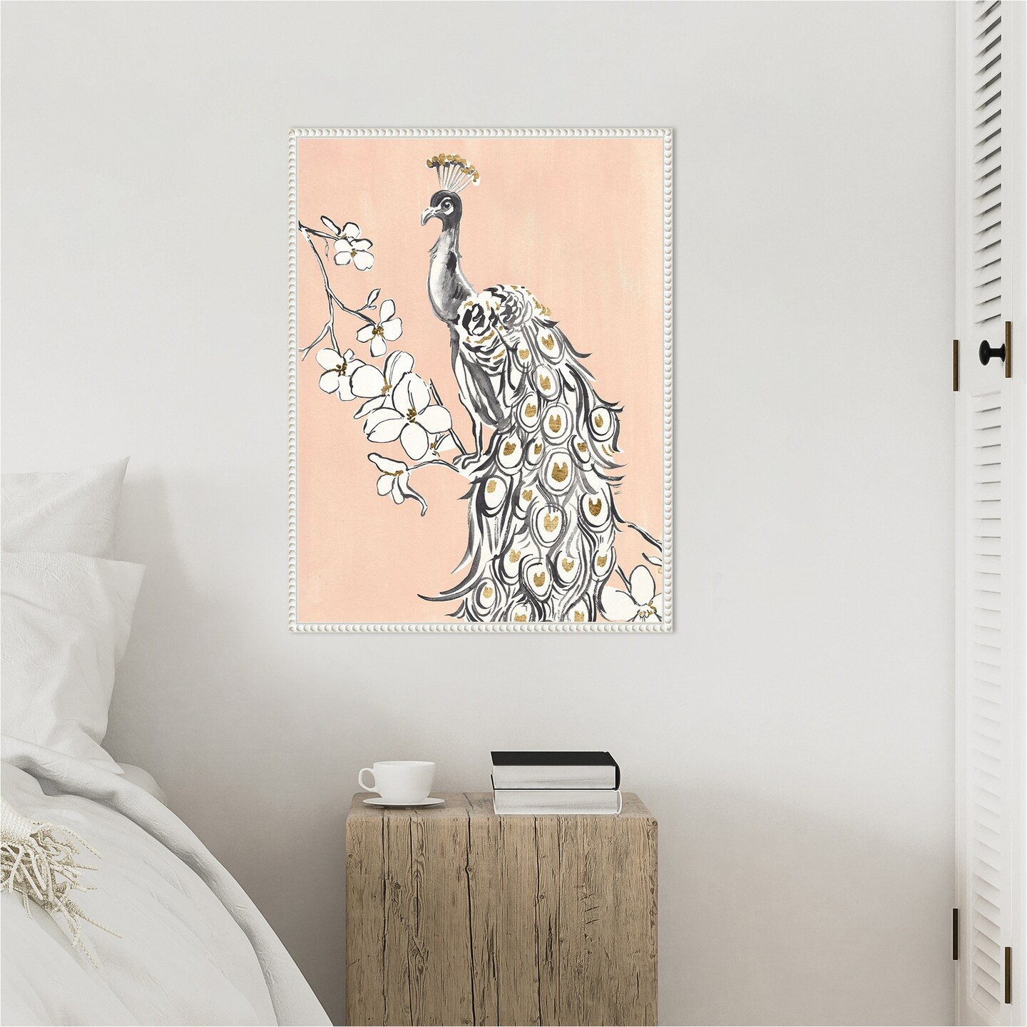 Peacock in Gold II by Annie Warren Framed Canvas Wall Art