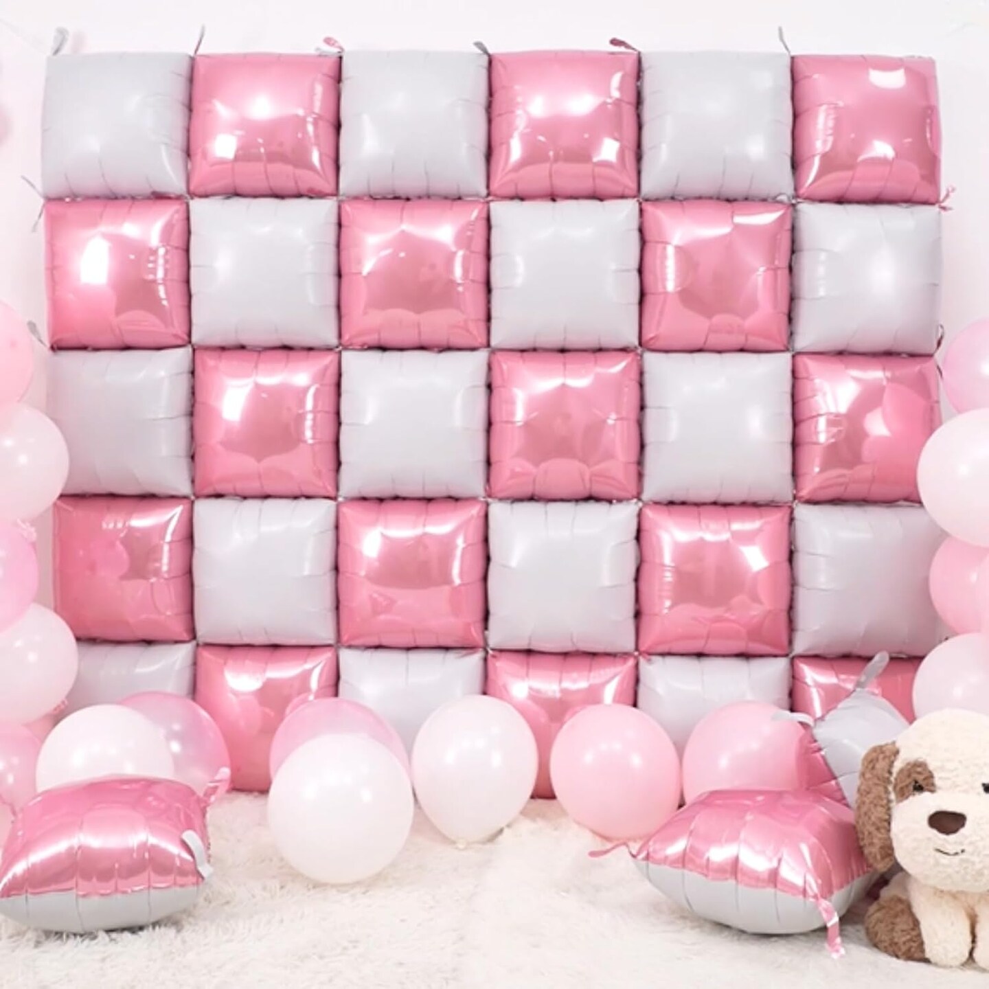 Pearl Pink and White Double Sided Square Foil Balloons Wall,19 Inches