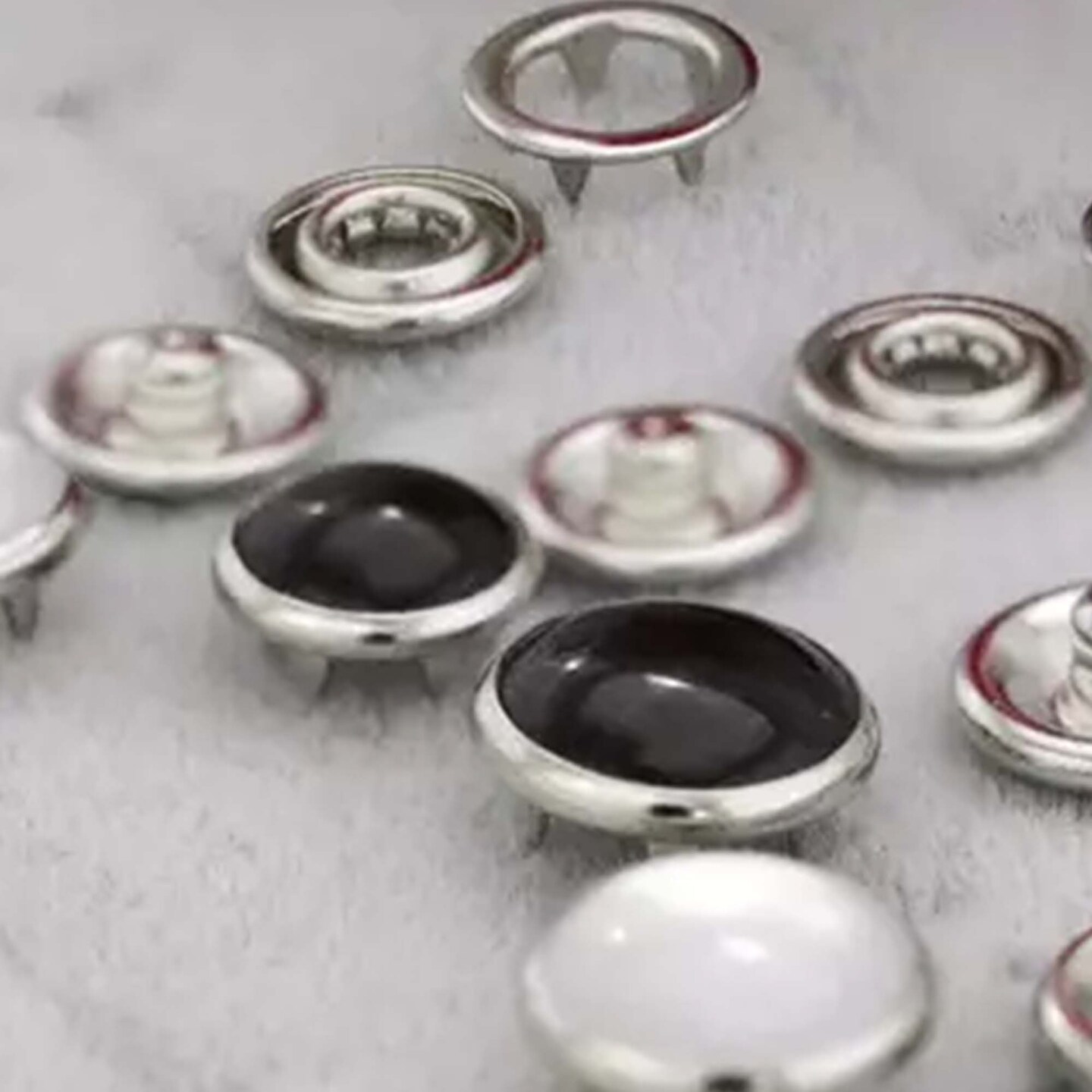 Pearl Prong Ring Snaps with Button Cover 4-Part Set Classic Fasteners Black White