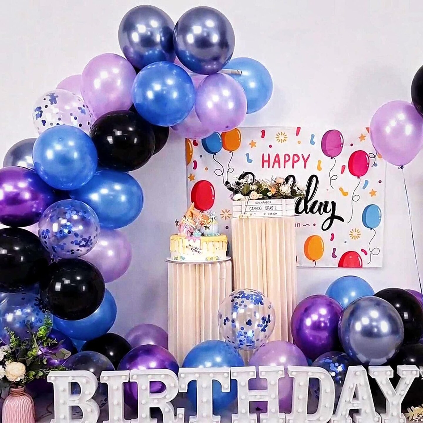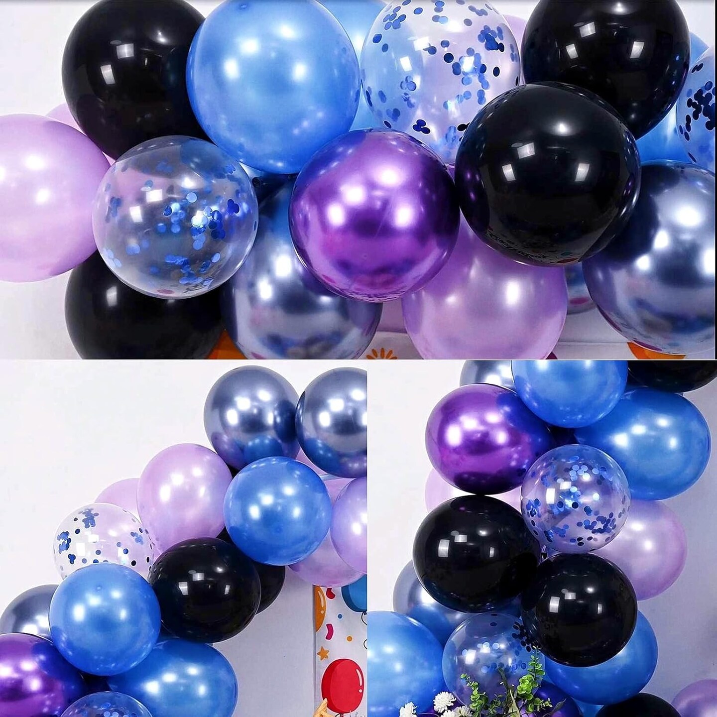 Pearl Purple Blue Confetti Latex Balloons(Black Blue Purple)