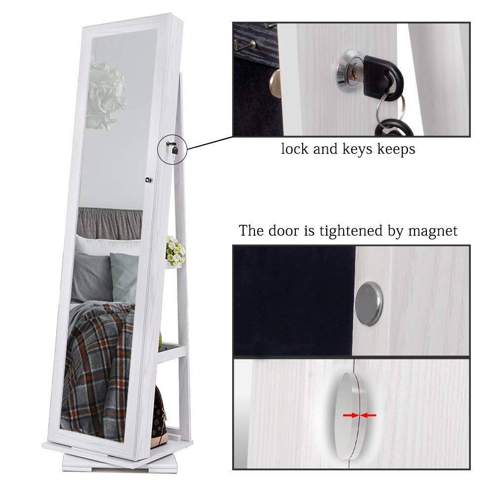 Pearl White Rotatable 2-in-1 Lockable Jewelry Cabinet