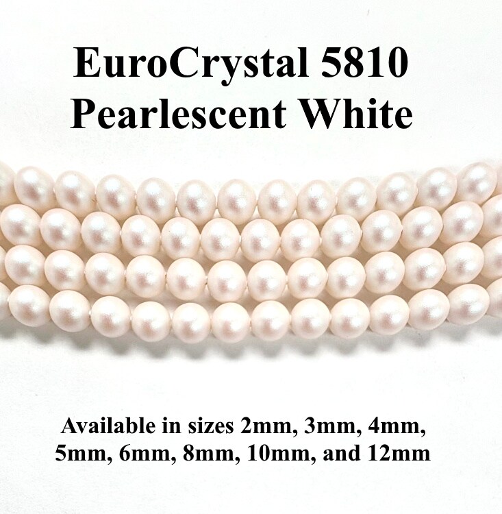 Pearlescent White EuroCrystal 5810 Round Pearls - 2mm, 3mm, 4mm, 5mm, 6mm, 8mm, 10mm, and 12mm - Strands - Made in Austria
