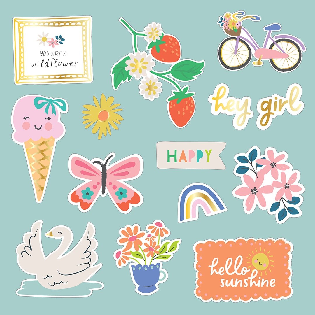 Pebbles Cool Girl Ephemera Die-Cuts 74/Pkg-Icons, Gold Foil