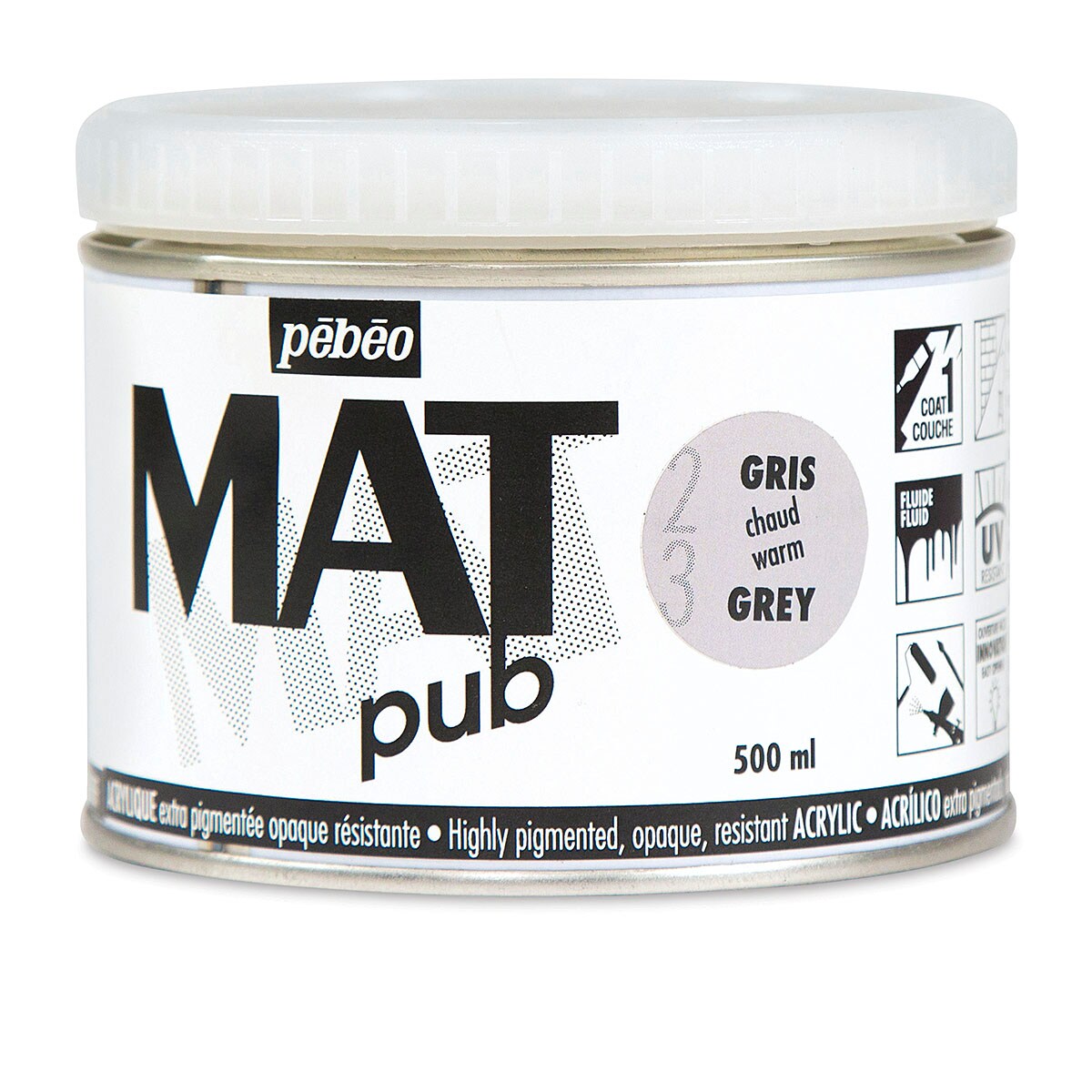 Pebeo Mat Pub Acrylic Paint - Warm Gray, 500 ml