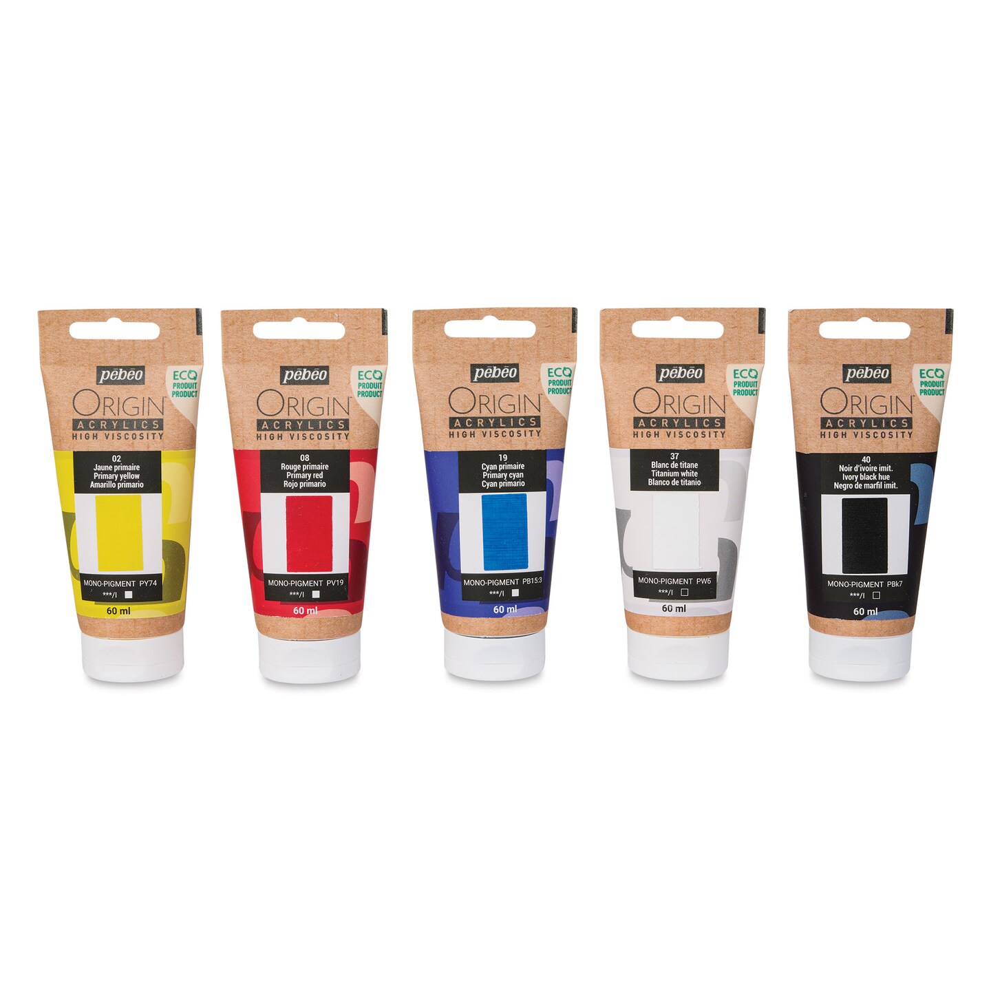 Pebeo Origin Acrylic Paint - Set of 5, Primary, 60 ml