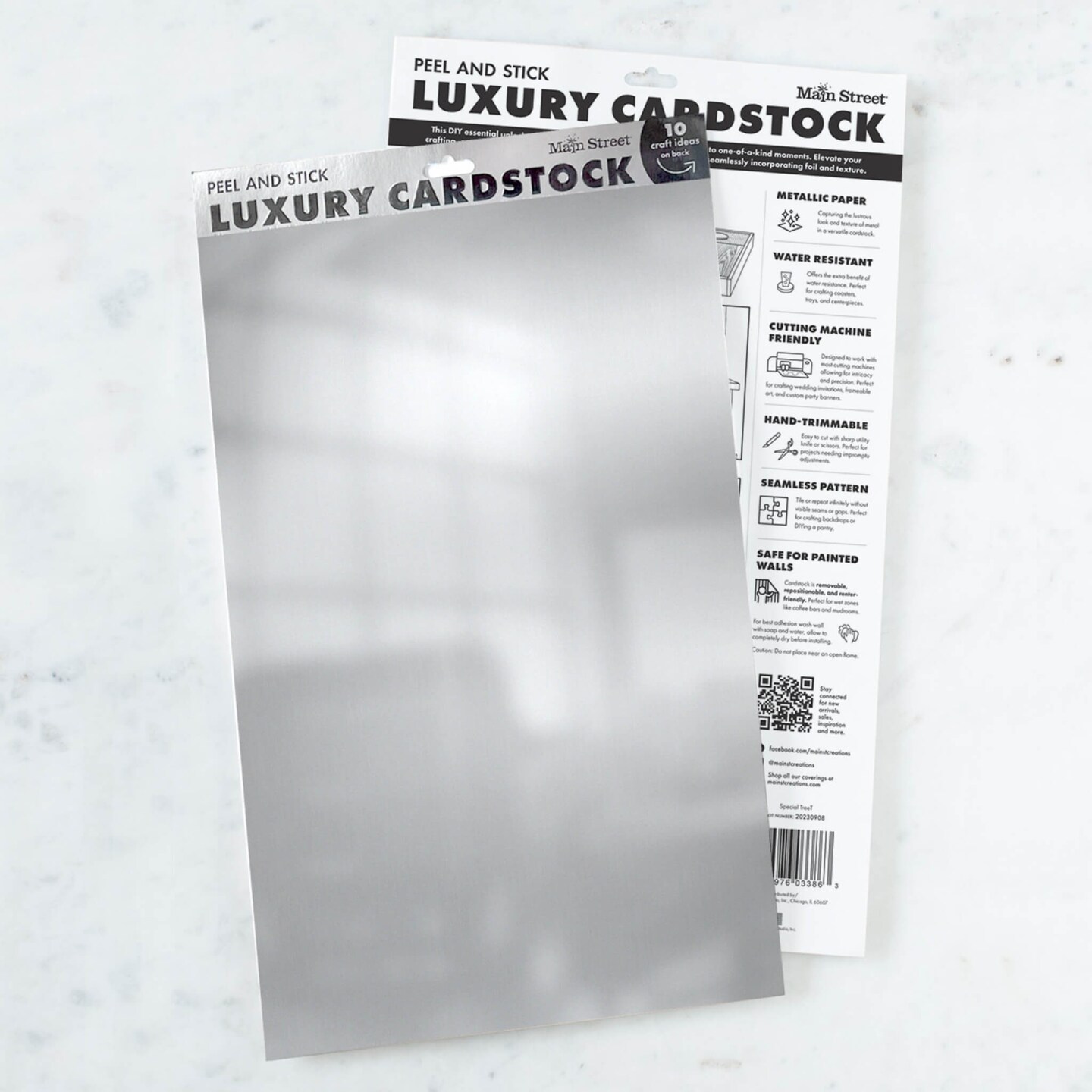 Peel and Stick Craft Paper. Metallic Silver Solid Print. 12-Pack of 17.25" x 10" Embossed Peel and Stick Cardstock