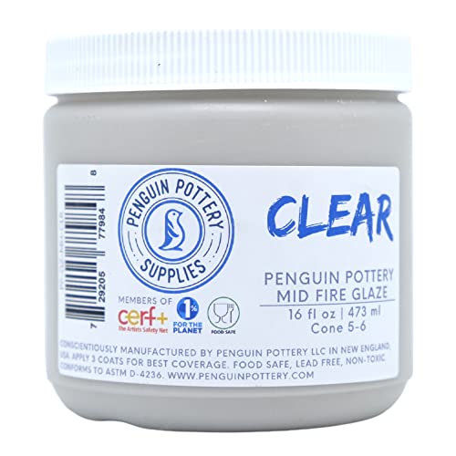 Penguin Pottery - Clear Glaze - Mid Fire Glaze Cone 6 for Mid Fire Clay, High Fire Clay - (1 Pint | 16 oz | 473 ml)