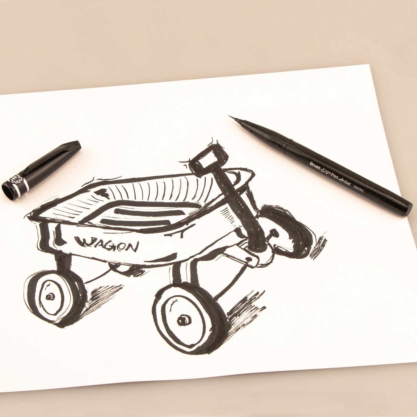 Pentel Arts Sign Pen W/Micro Brush Tip-Black