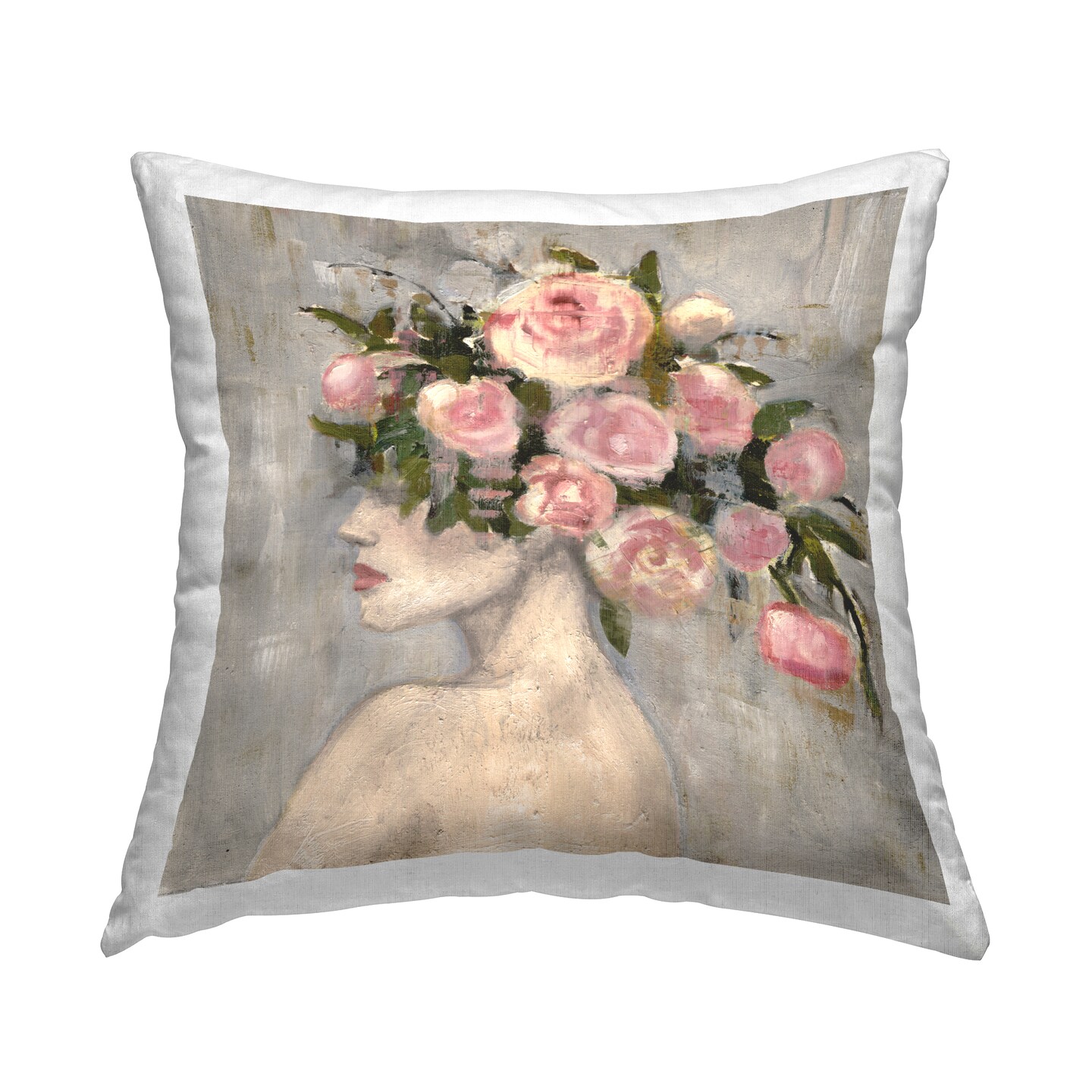 Peonies Headdress Woman Decorative Printed Throw Pillow Design by Charity Henderson, 18 x 7 x 18