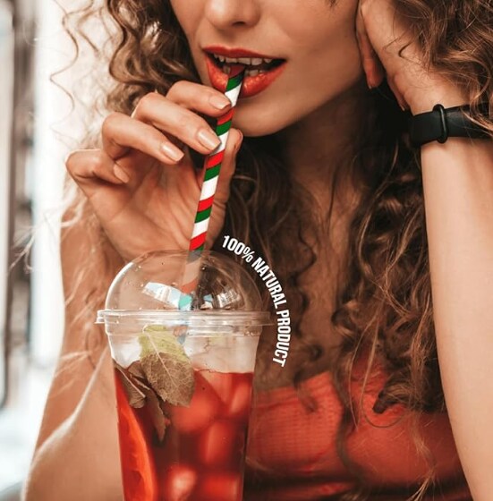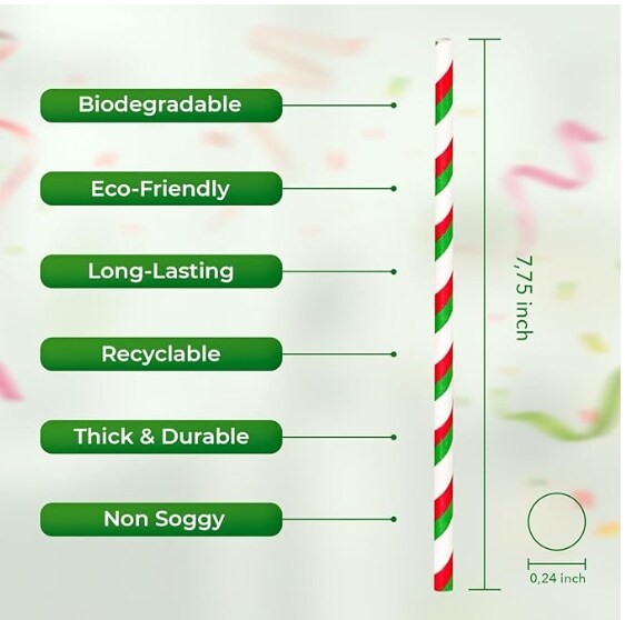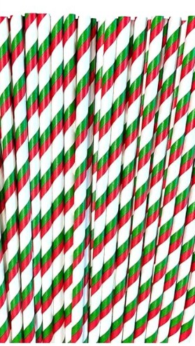 Pepermint Red, Green and White Striped Foil Paper Christmas Straws,